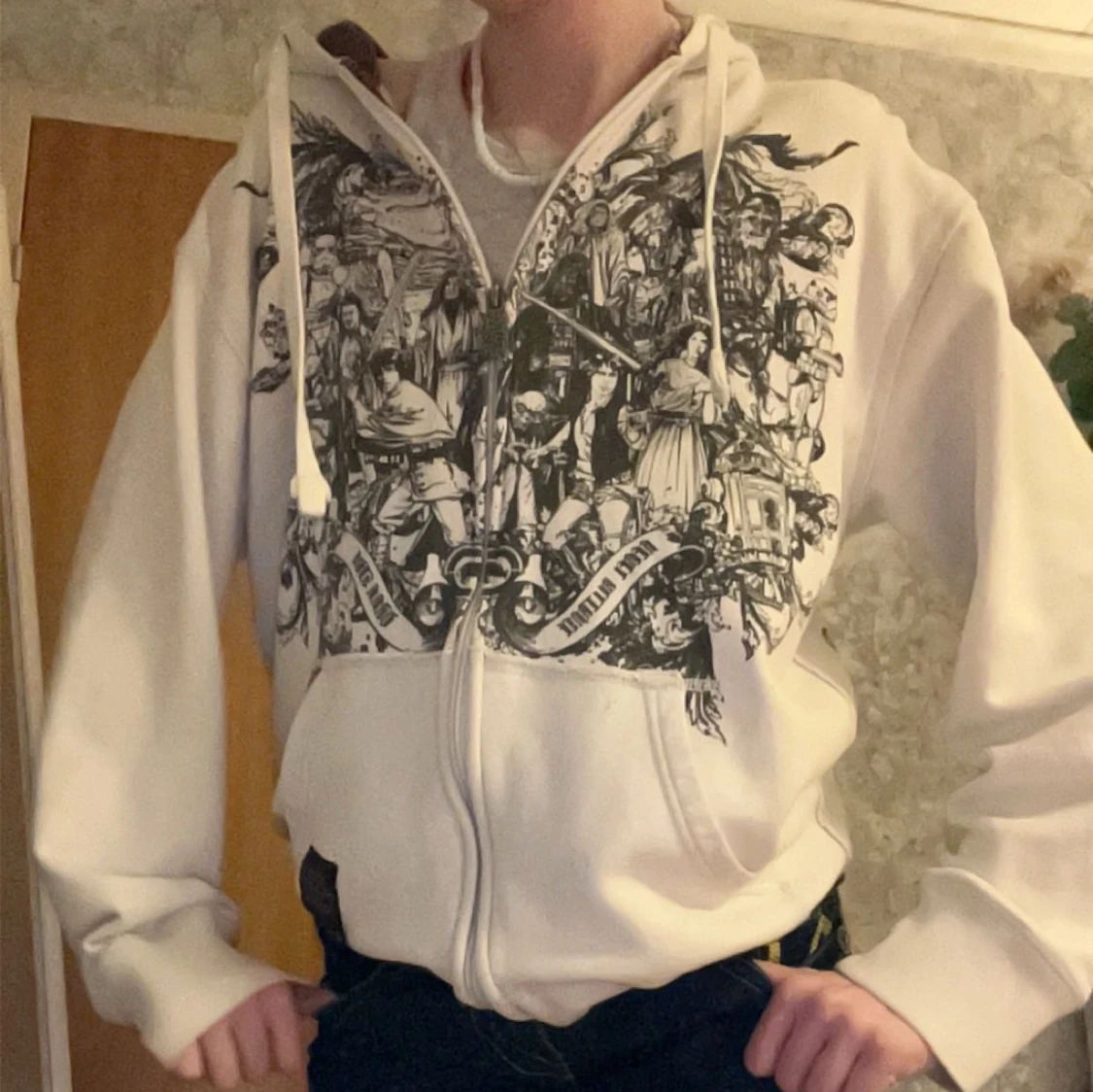 as cool starwars zip up hoodie, snyggt tryck på baksidan. storlek S men skulle säga mer M. skriv för fler bilder!⚡️