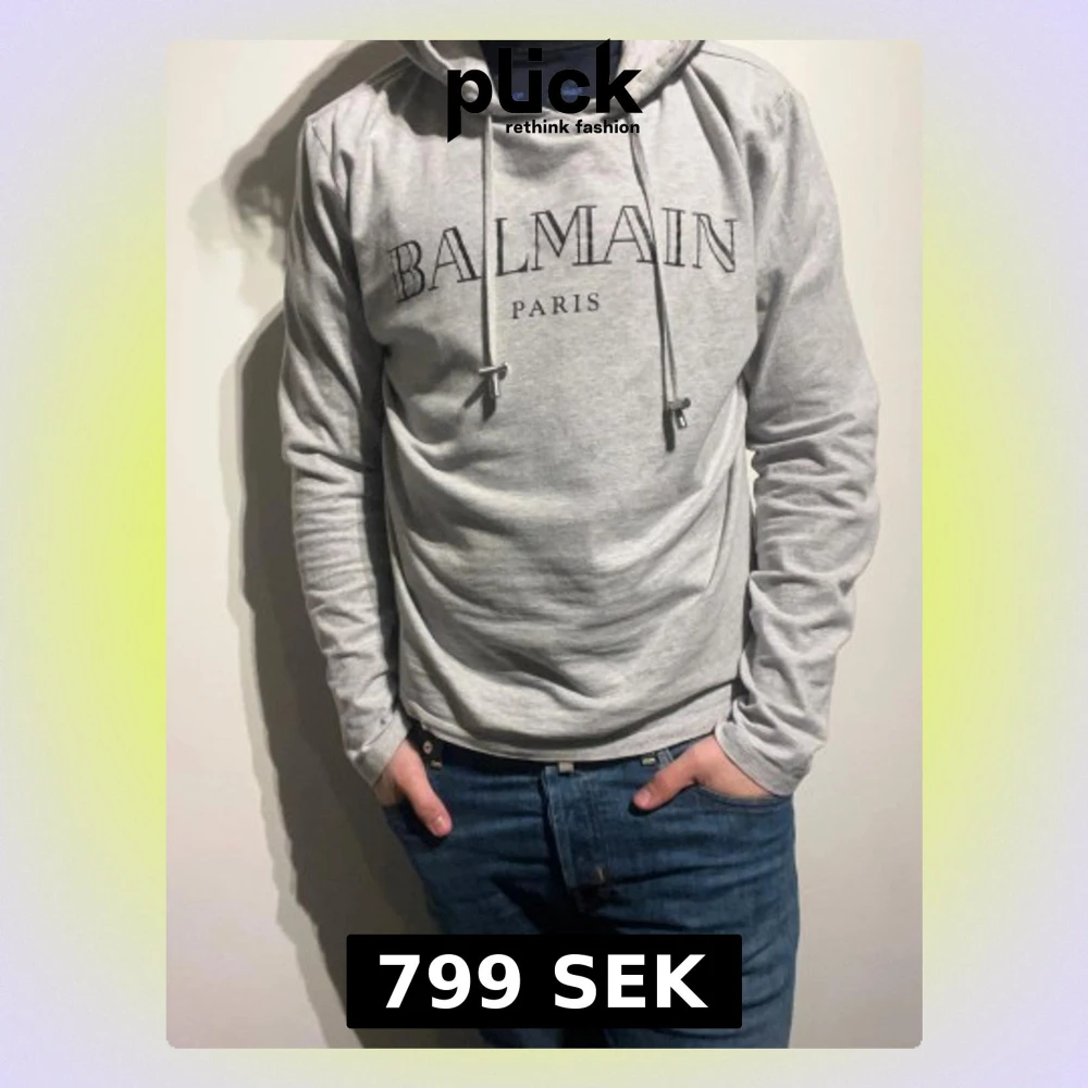 Förstår inte varför det står H&M men tror det är för att märket Balmain inte finns att klicka i som ett varumärkes Hej! Säljer nu denna väldigt snygga Balmain Paris Tunna Hoodien. Storlek M Medium Färg: Grå Skick: Mycket gott – endast använd vid enstaka tillfällen Skickas spårbart eller hämtas upp efter överenskommelse. Vid intresse – hör gärna av dig. Skriv vid frågor eller ifall du vill ha fler bilder:)