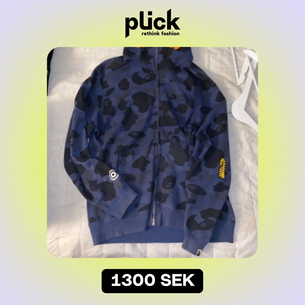 Bape hoodie köpt här på plick för 2000kr! Woodland collab. Skriv provat för bilder på alla tags, har tyvärr inget kvitto. Storlek XL men skullensäga att den passar M på mig som är smal och 180cm lång