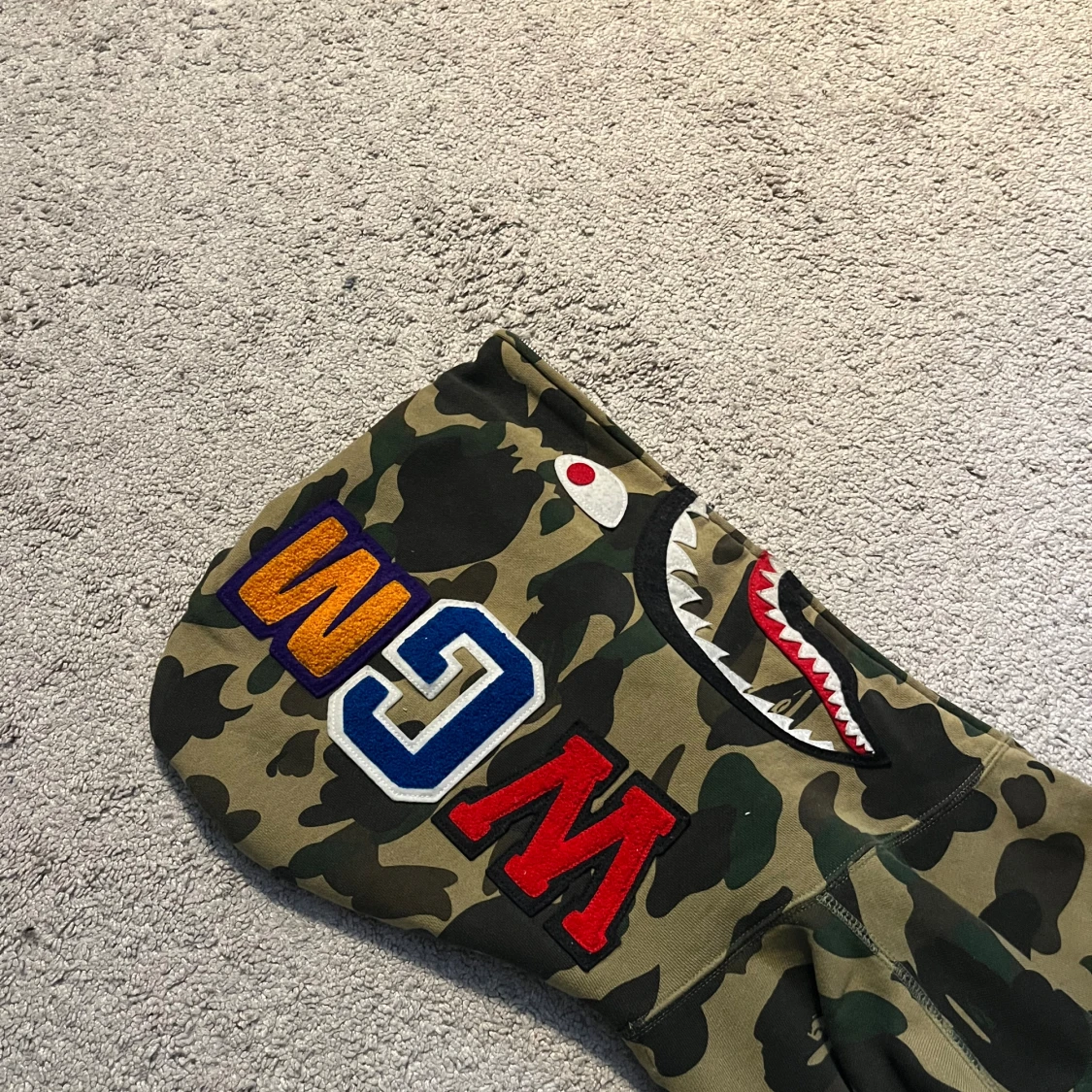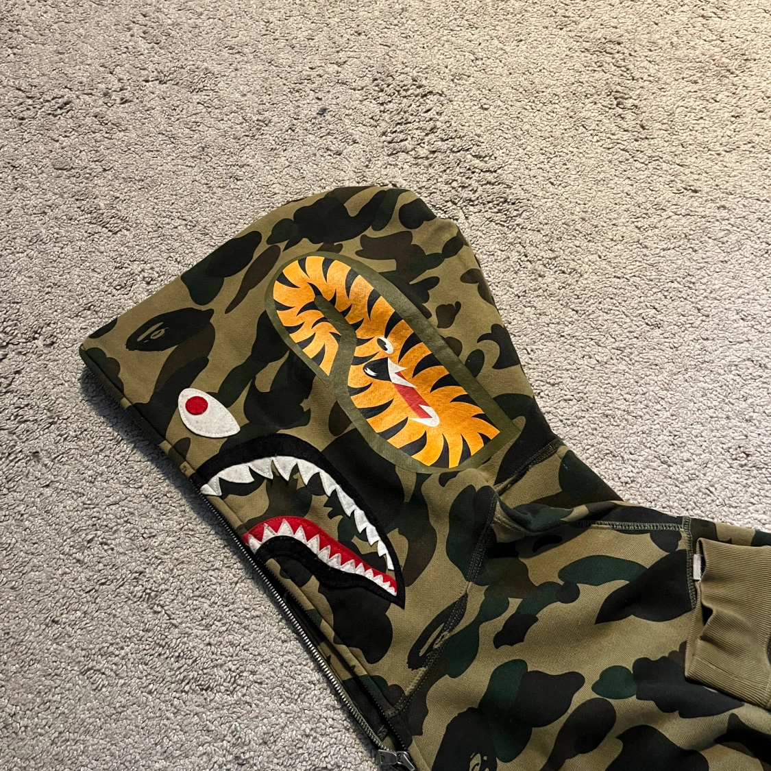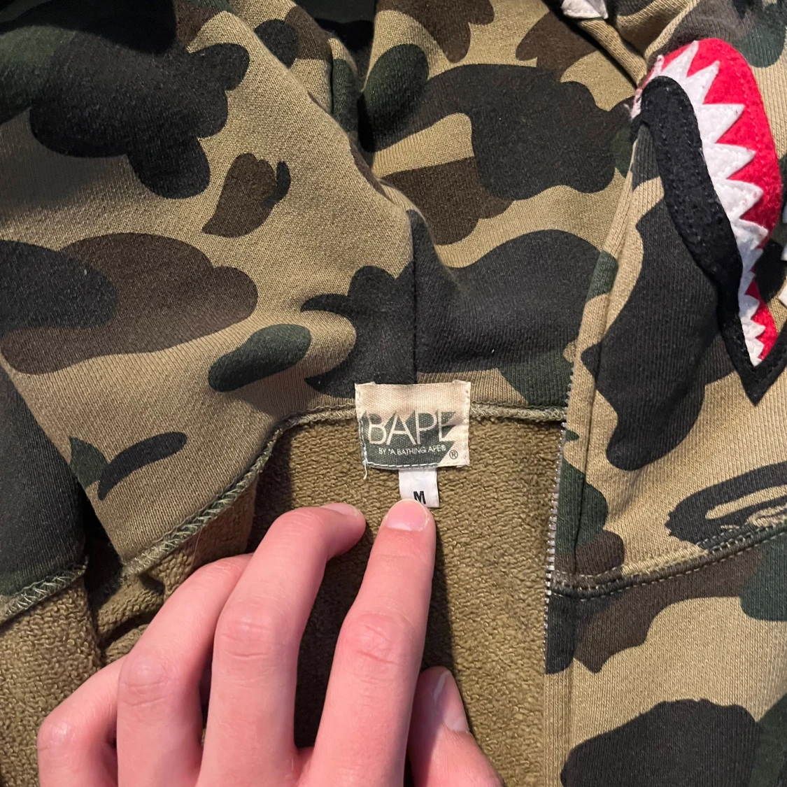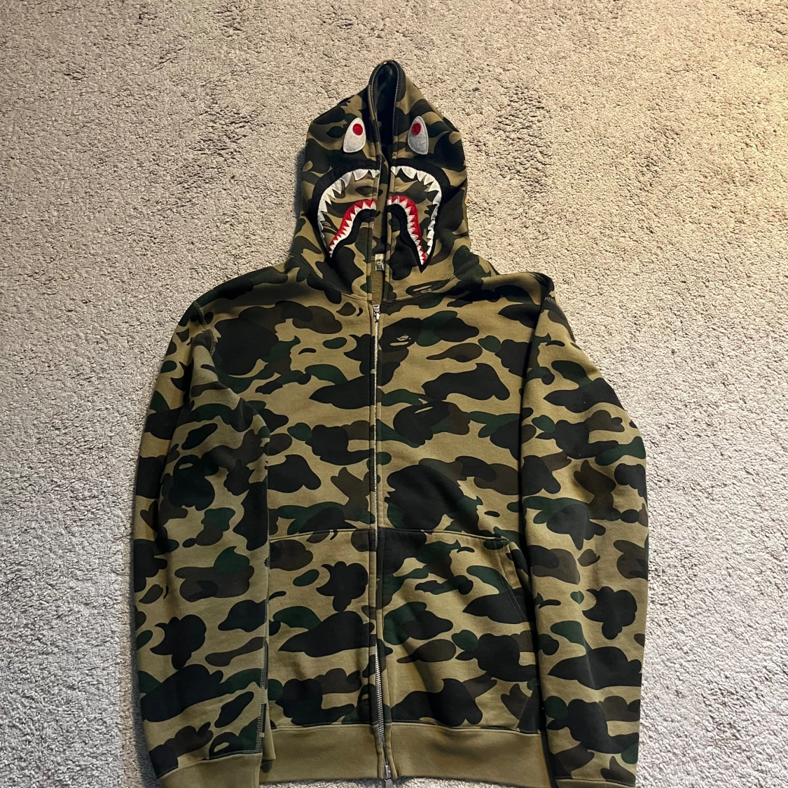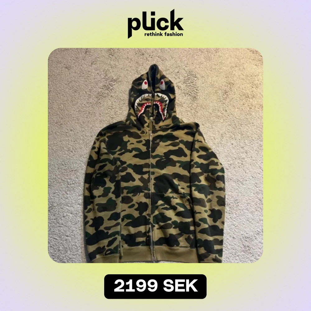 Bape 1st edition hoodie Köpt i Miami i retail butik! Storlek L, sitter något mindre som bape brukar. Skick: 7,5/10, inga fläckar eller crackings med väl använd. Extremt limiterade exemplar samt 1st edition på camo-shark släppen.
