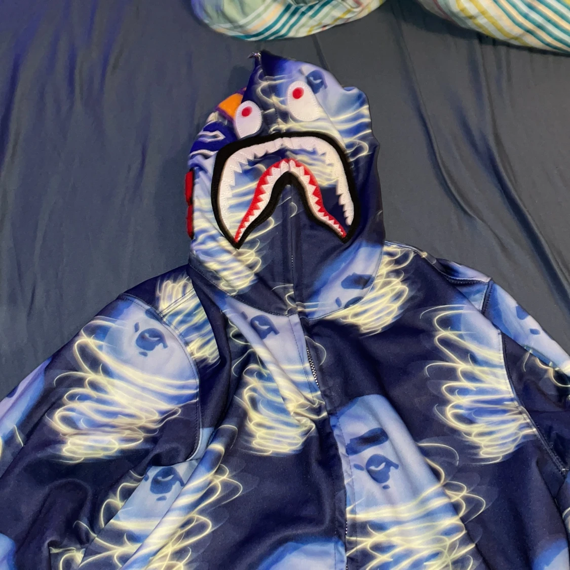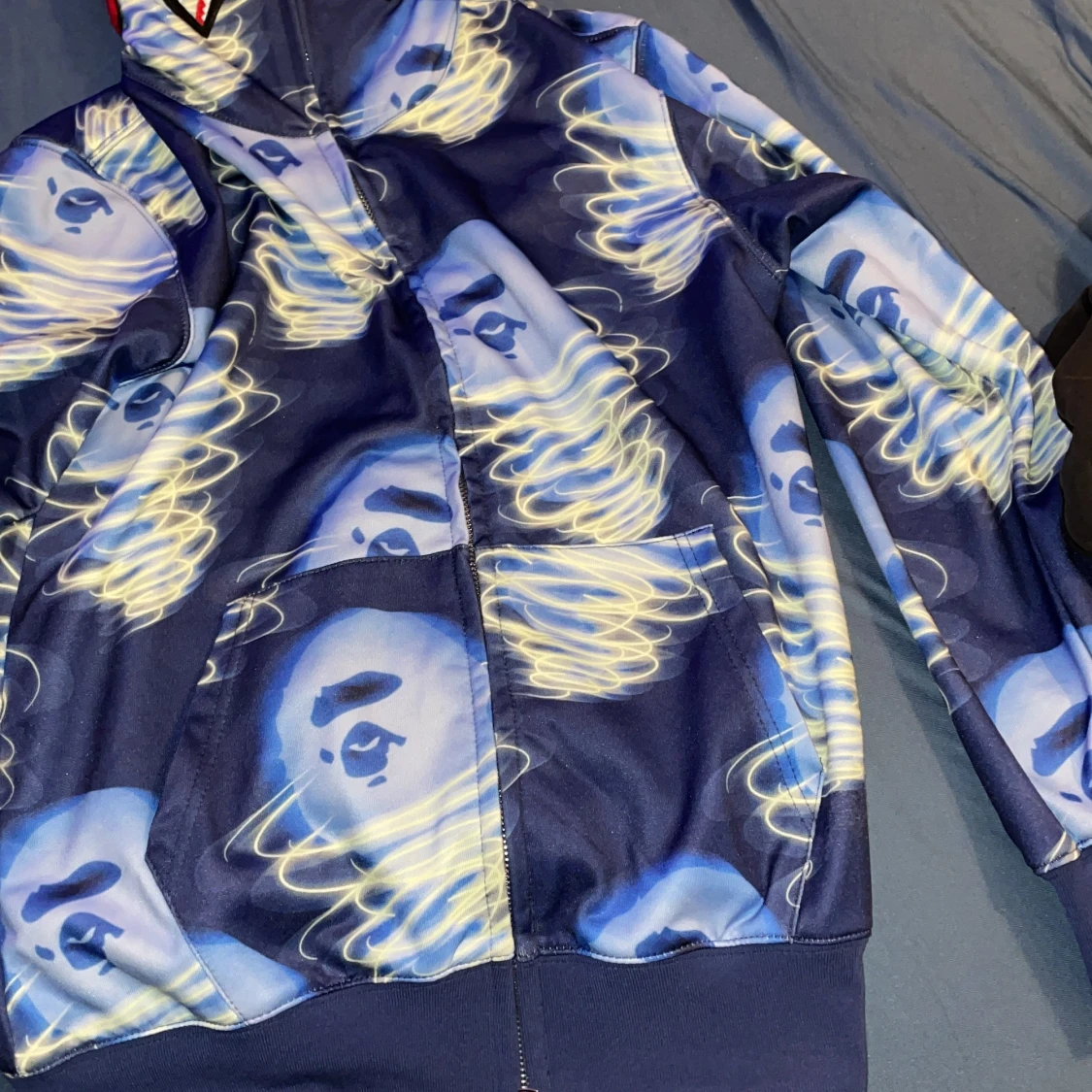 Hej köpte den i barcelona och den är väldigt sällsynt inte som alla andra bape koftor den har stretchigt material och topp kvalitet på materialet lyser lite lätt i mörkret ockso koftan kan beskrivas som att den ”skiner” lite hela tiden aldrig använd
