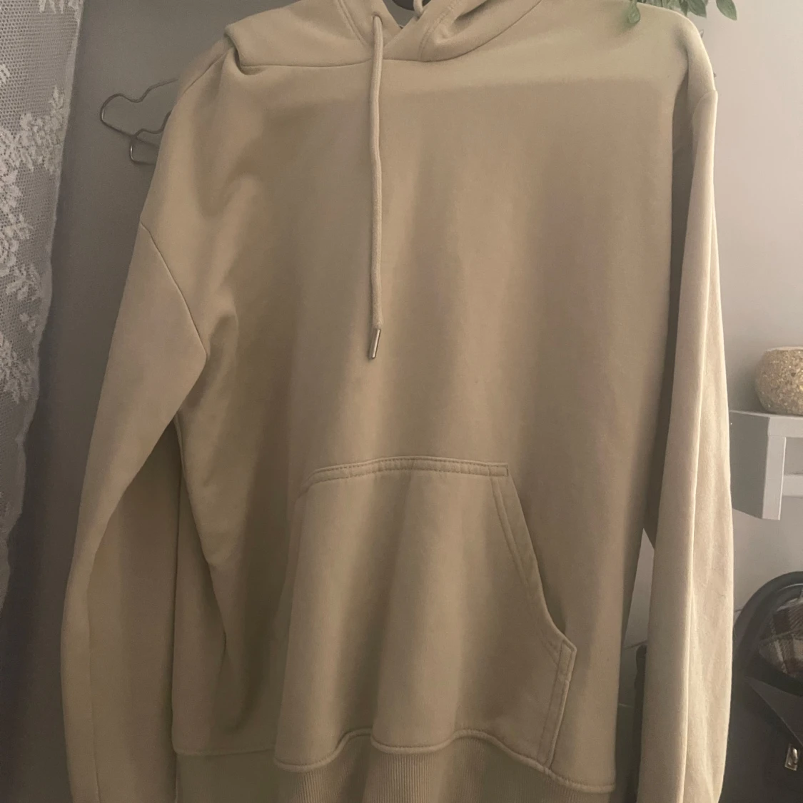 Säljer en beige hoodie med huva🥰.Perfekt för chill dagar och enkel att matcha. Materialet känns mjukt och skönt mot huden och tröjan är i börja skick ☺️