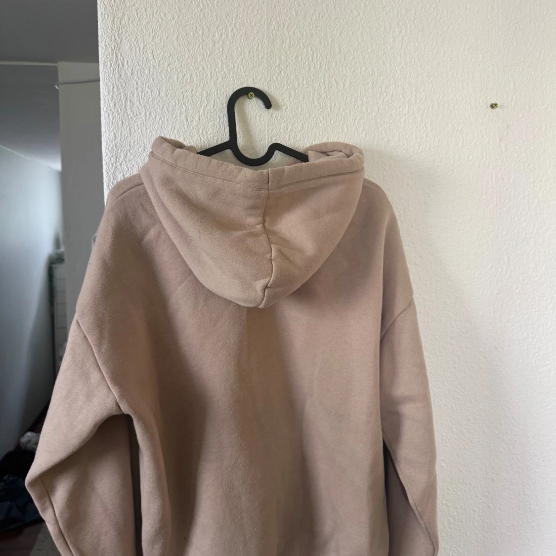 Säljer en oversized beige hoodie från BikBok i storlek XS. Tröjan har huva med dragsko och en stor magficka framtill. Perfekt för en avslappnad stil och enkel att matcha med det mesta.