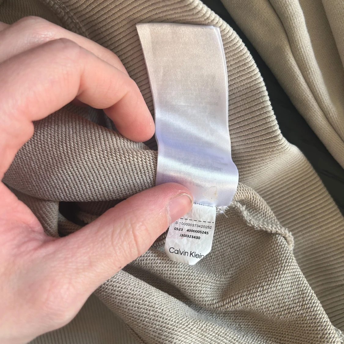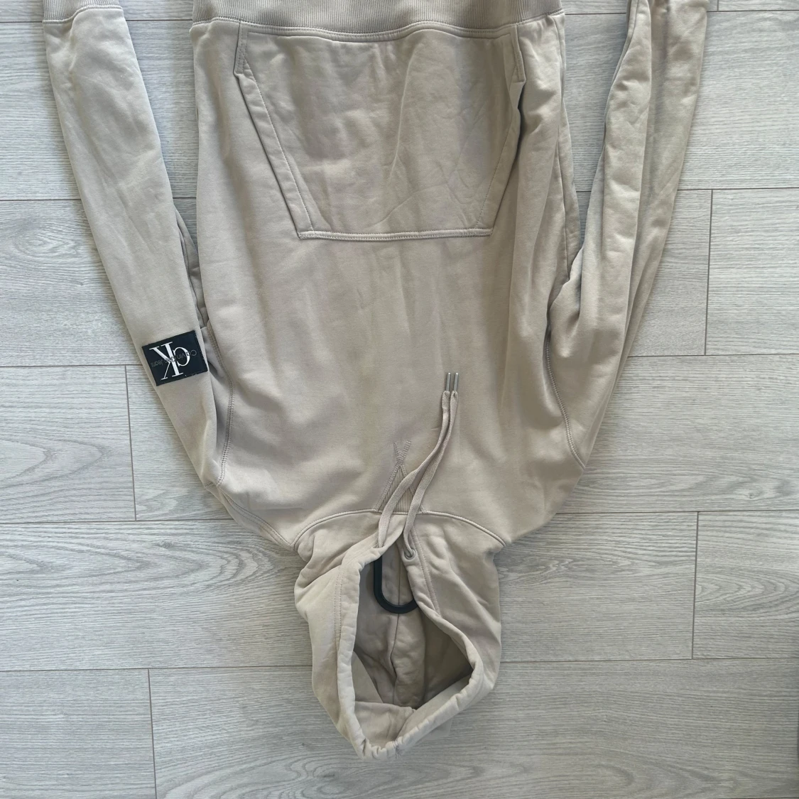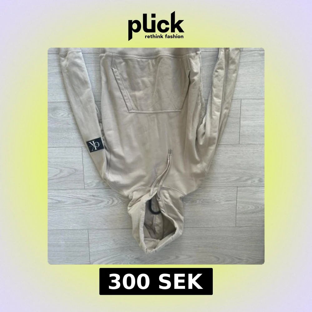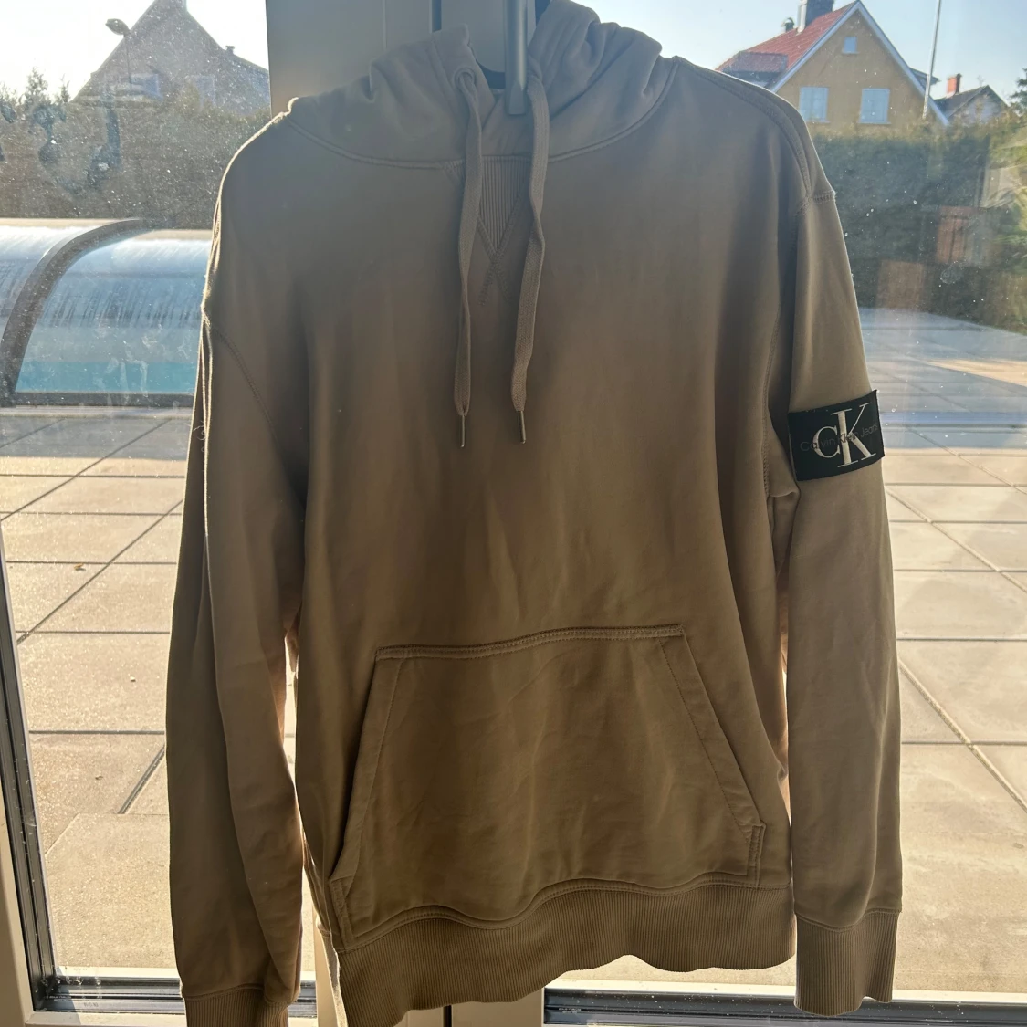 Säljer en stilren beige hoodie från Calvin Klein Jeans. På ärmen finns en svart patch med CK-loggan. Knappt använd och precis som ny