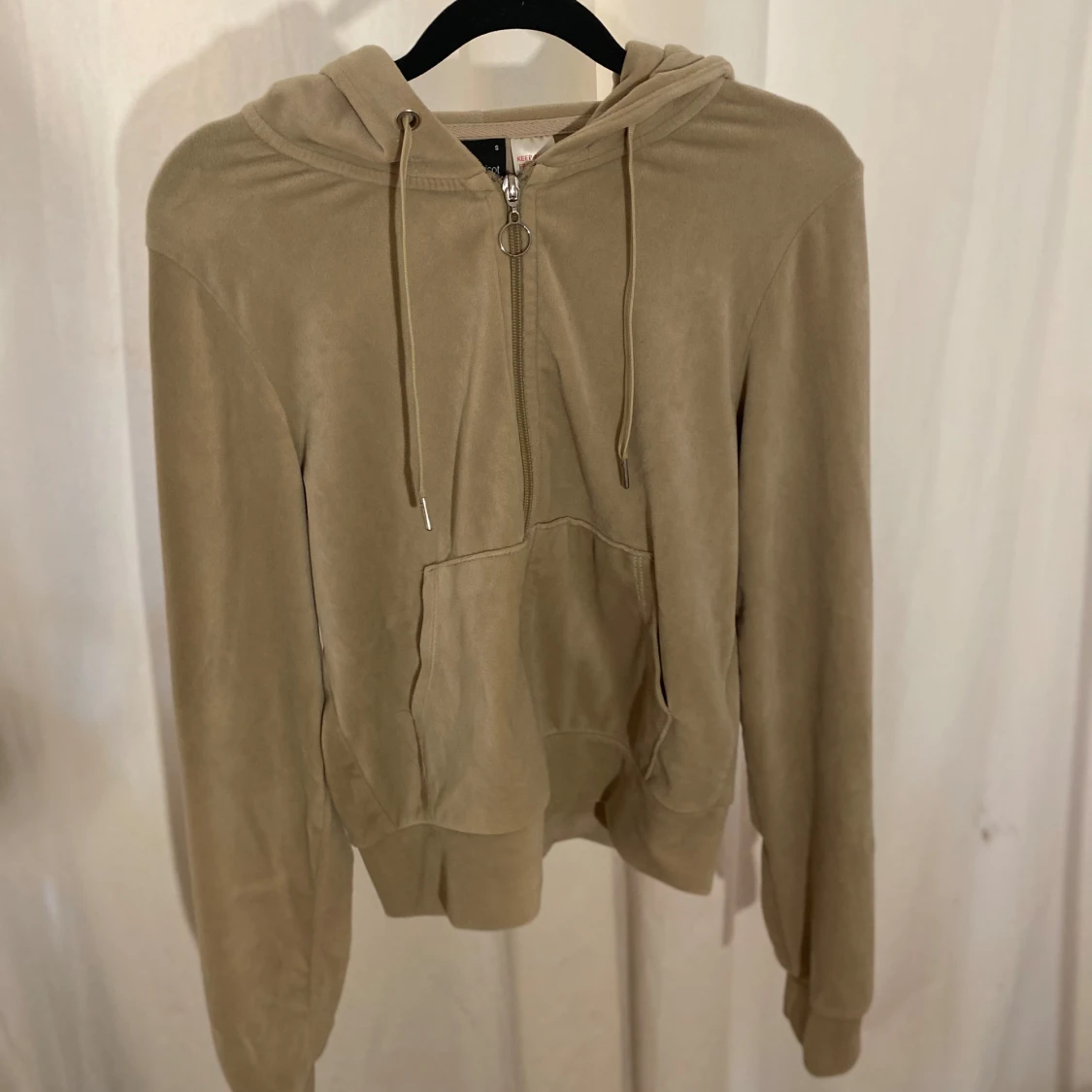 Säljer en beige hoodie från Gina Tricot i mjukt material. Den har dragkedja framtill, huva med snören och två fickor. Perfekt för en avslappnad stil och passar bra till jeans eller kjol.💗💗