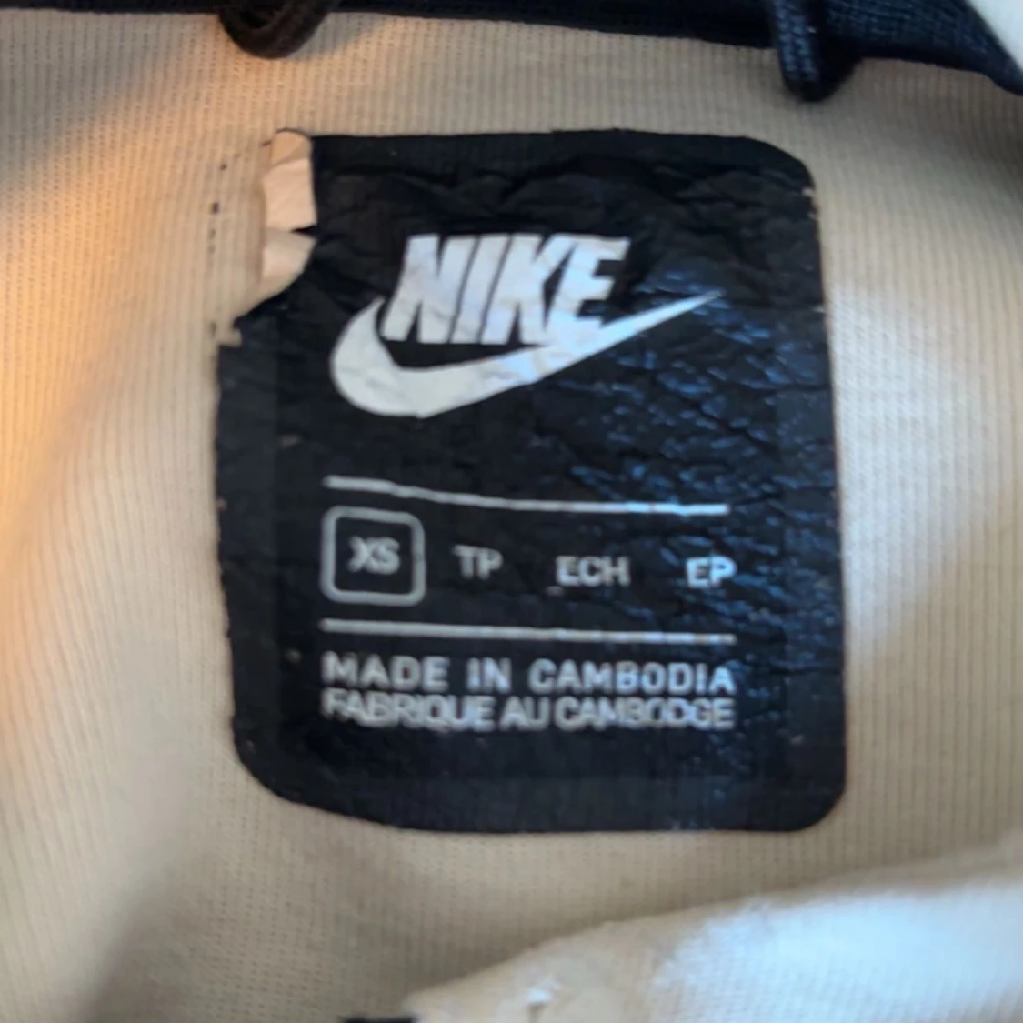 Säljer en beige hoodie från Nike i storlek XS. Tröjan har hel dragkedja, huva och en svart detalj på ärmen. Svarta kantdetaljer och Nike-logga på bröstet. Perfekt för chill eller träning, riktigt skön och stilren.