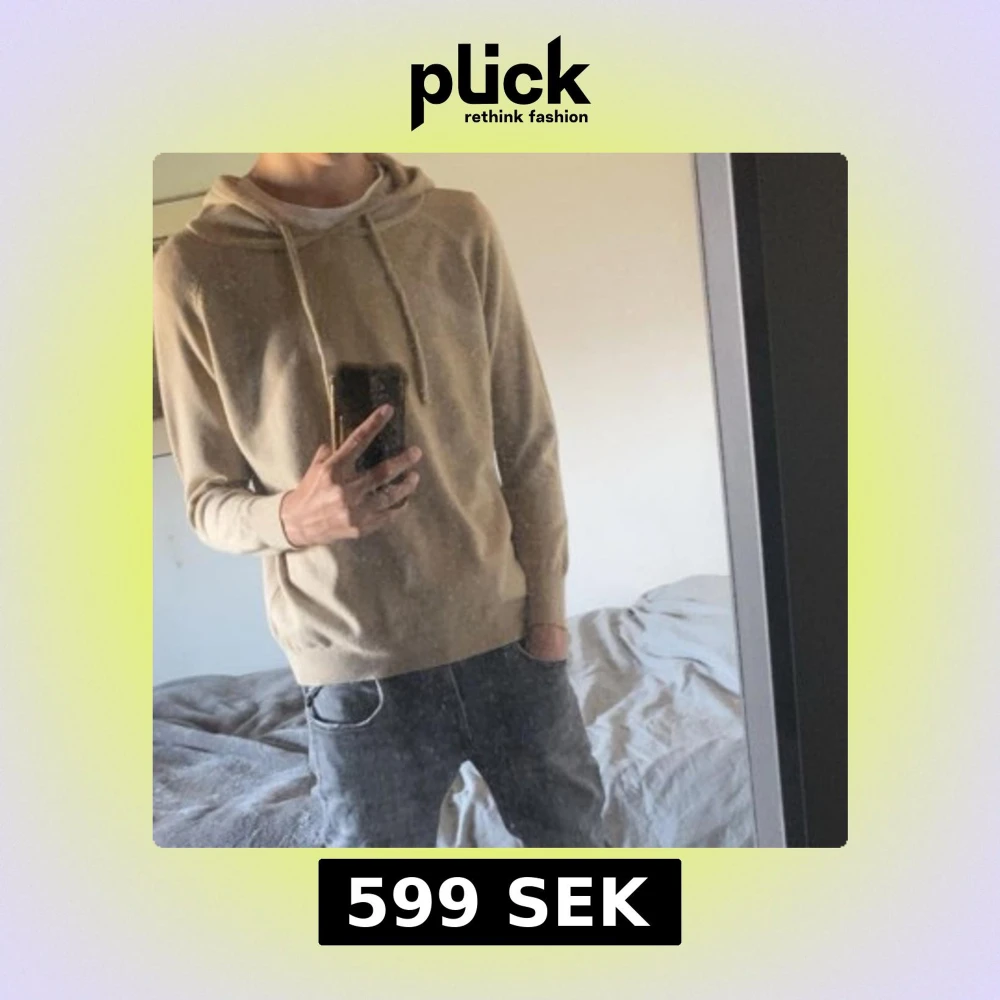 Beige stickad hoodie med huva och snörning. Den är i färgen sand och har en tajt passform. Perfekt för dig som en enkel och stilren look. Passar till det mesta och är riktigt skön att ha på sig