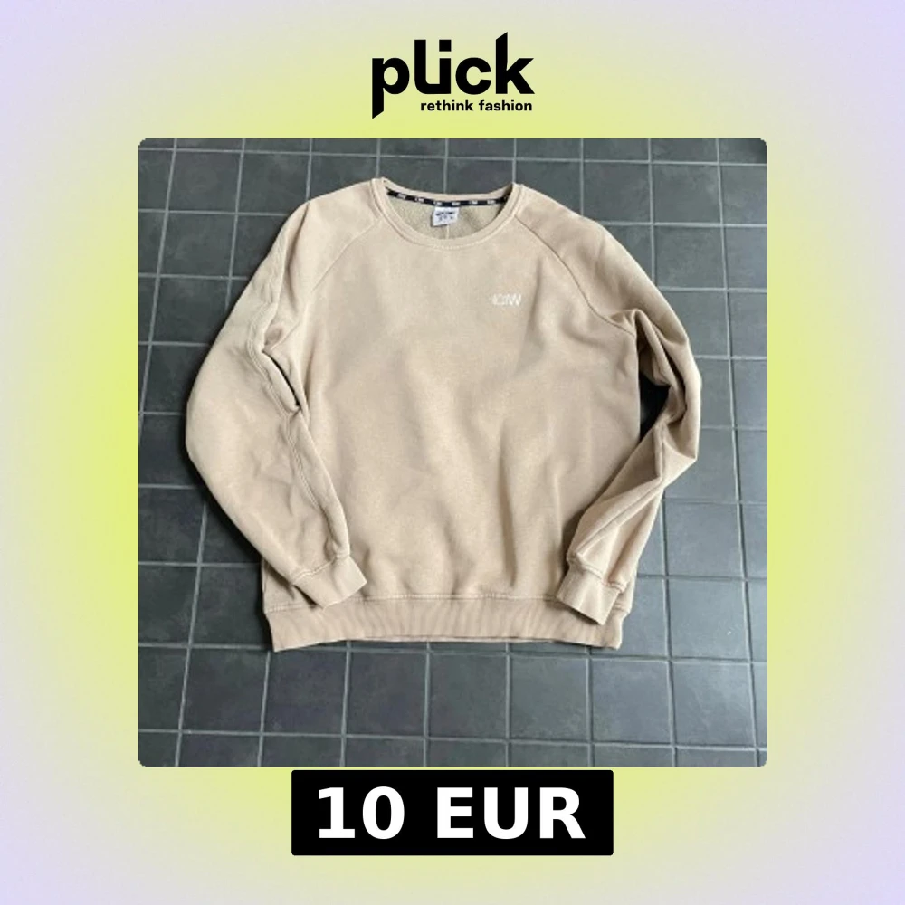 Säljer en stilren beige sweatshirt från ICANIWILL med diskret logga på bröstet. Tröjan har rund halsringning, långa ärmar och ribbade muddar.