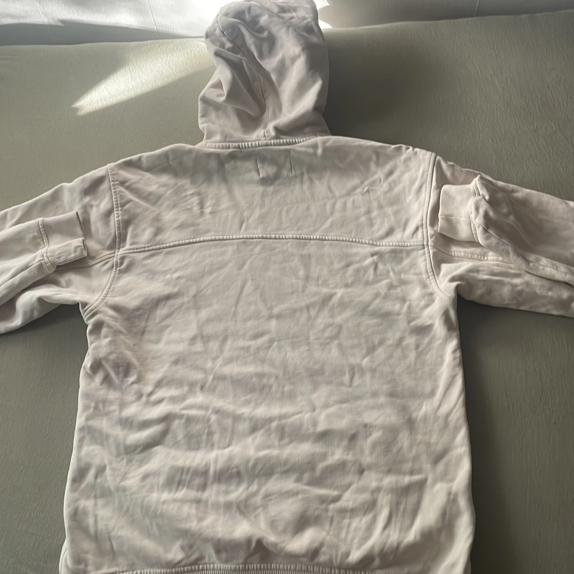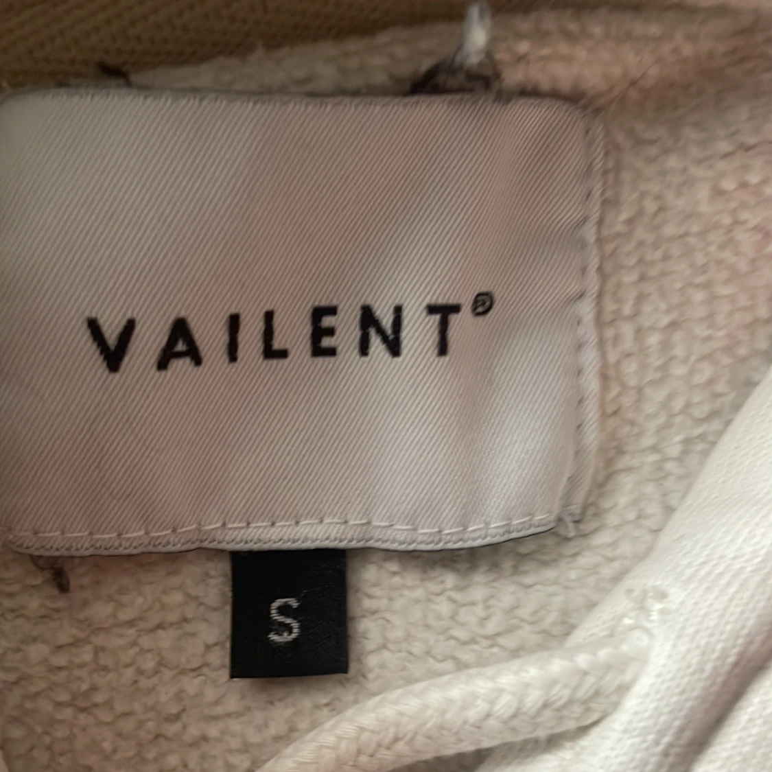 Detta är en beige hoodie från Vailent i storleken S men passar bra för XS också. Den har två ytterst små hål vid fickan i mitten på plagget.