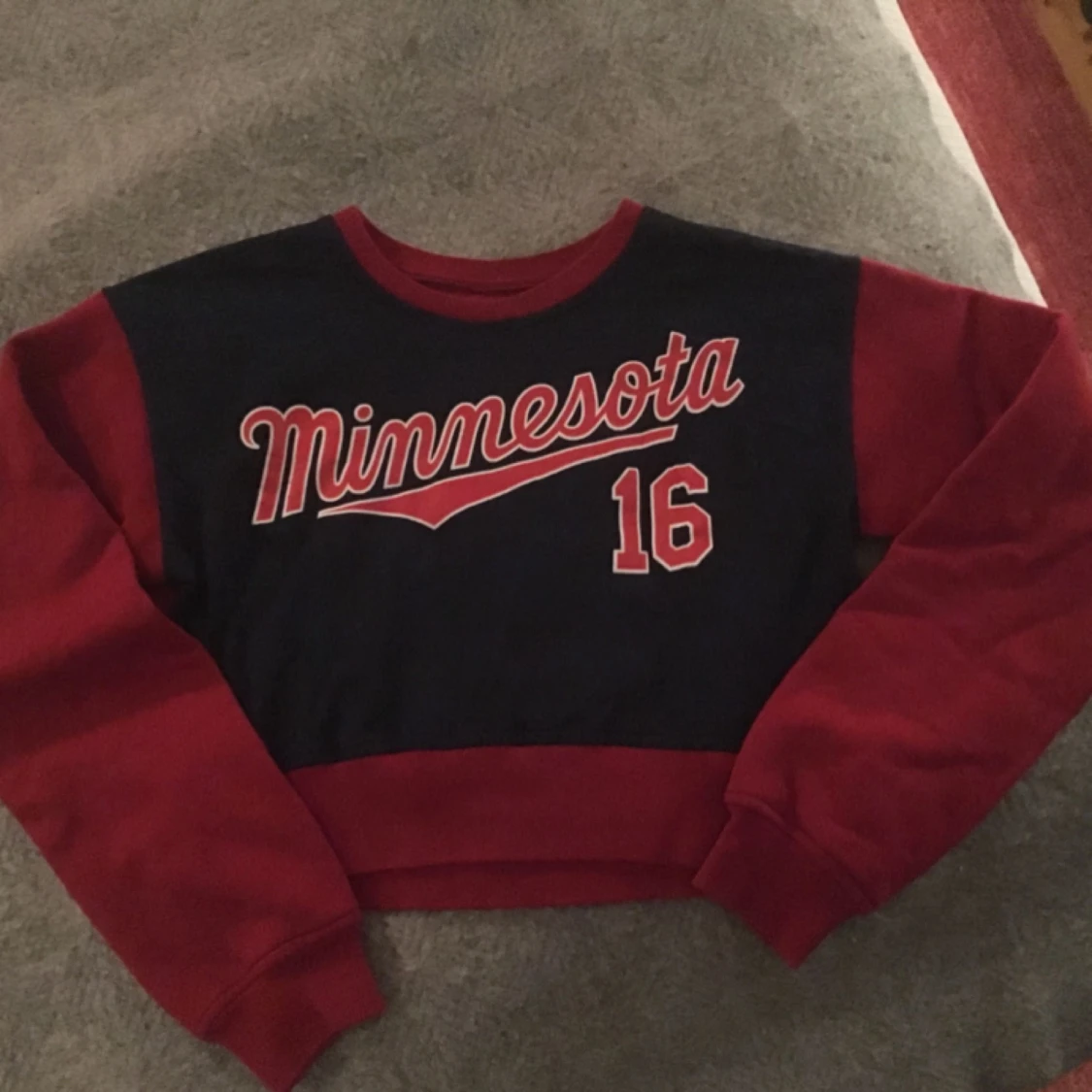 Marinblå och röd college tröja från Beyond Retro. Endast provad aldrig använd, deras egen design så den är i väldigt fint skick!