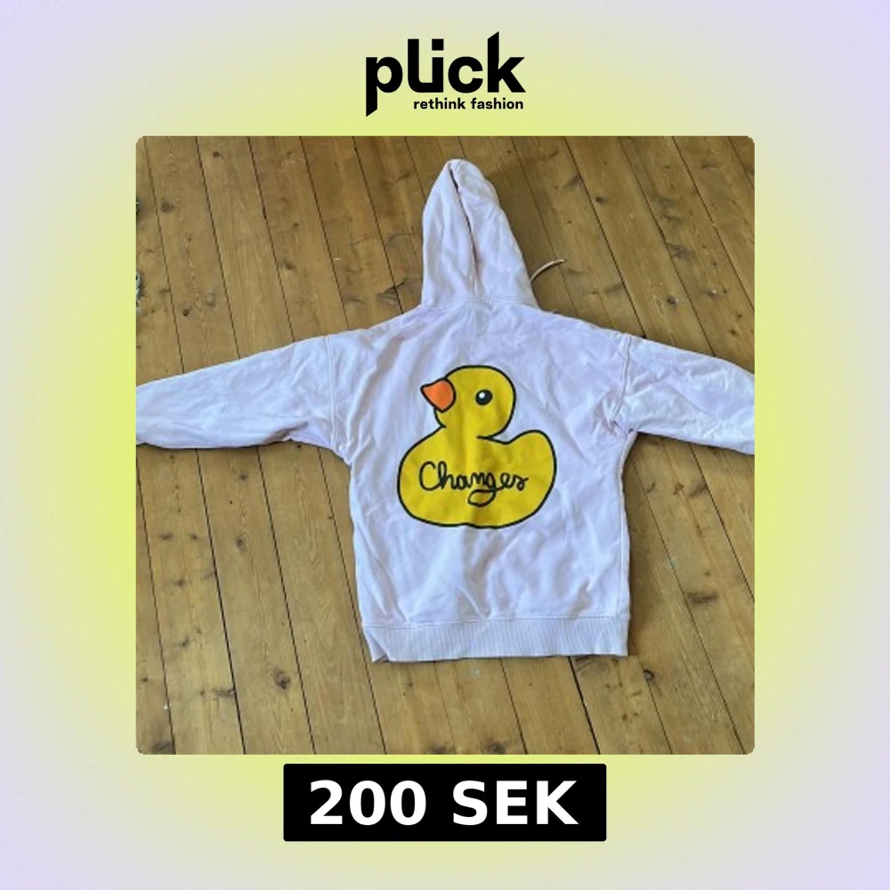 Säljer en ljusrosa hoodie från Bieber med stor gul anka och texten 'Changes' på ryggen. Framtill finns en magficka med Bieber-logga i svart. Hoodien har huva med snörning och långa ärmar. Perfekt för dig som gillar coola tryck och streetstyle.