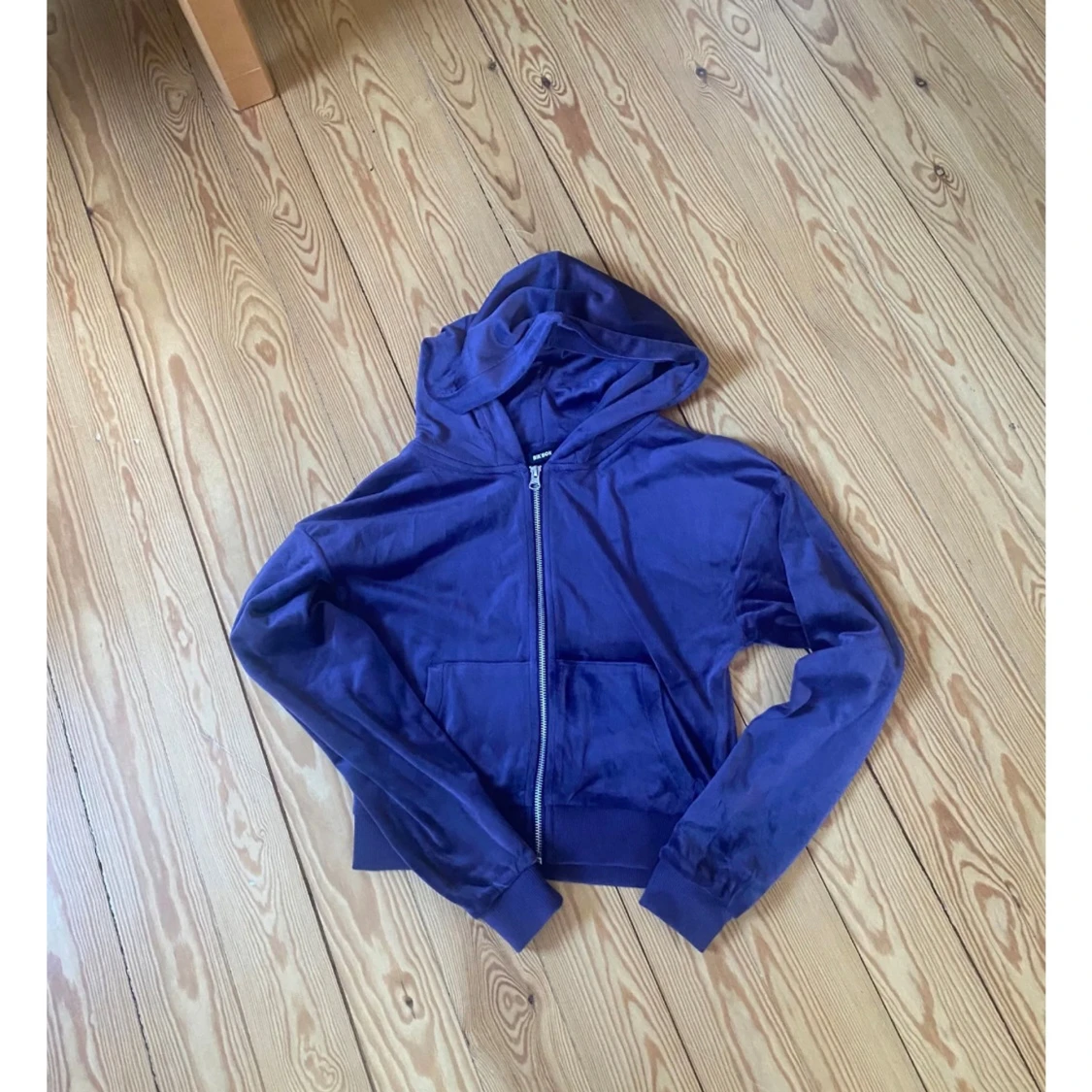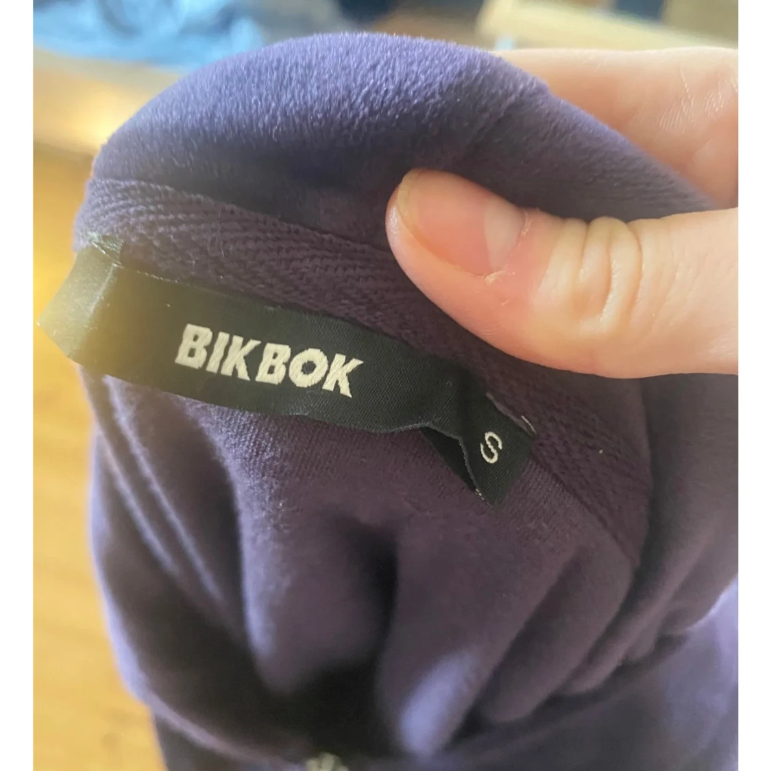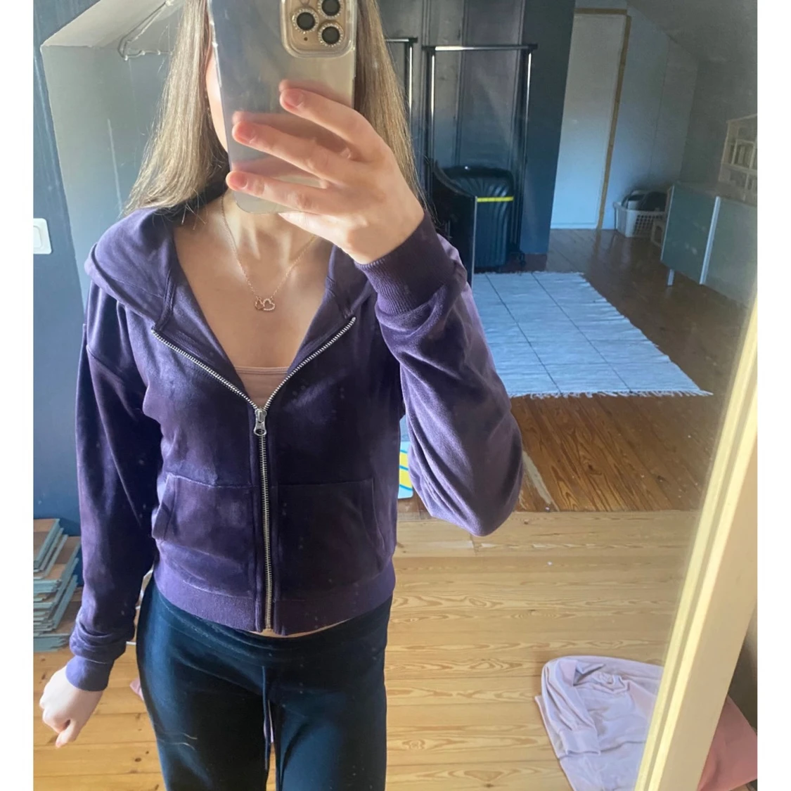 Mysig lila hoodie från BikBok med dragkedja framtill och huva. Modellen har två fickor på magen.