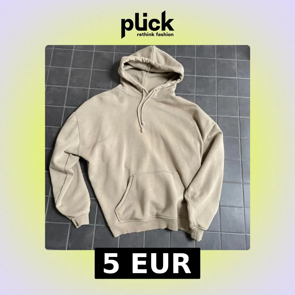 En stilren beige hoodie med huva och dragsko, samt en stor magficka framtill. Tröjan har långa ärmar och ribbade muddar vid ärmslut och nederkant. Märken på huven som inte lossnar vid tvätt.