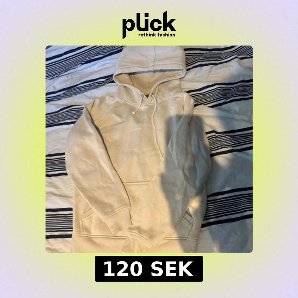 Säljer en beige hoodie från Bik Bok i storlek S. Tröjan har huva med snörning, magficka och mjukt fleecefoder på insidan.😊