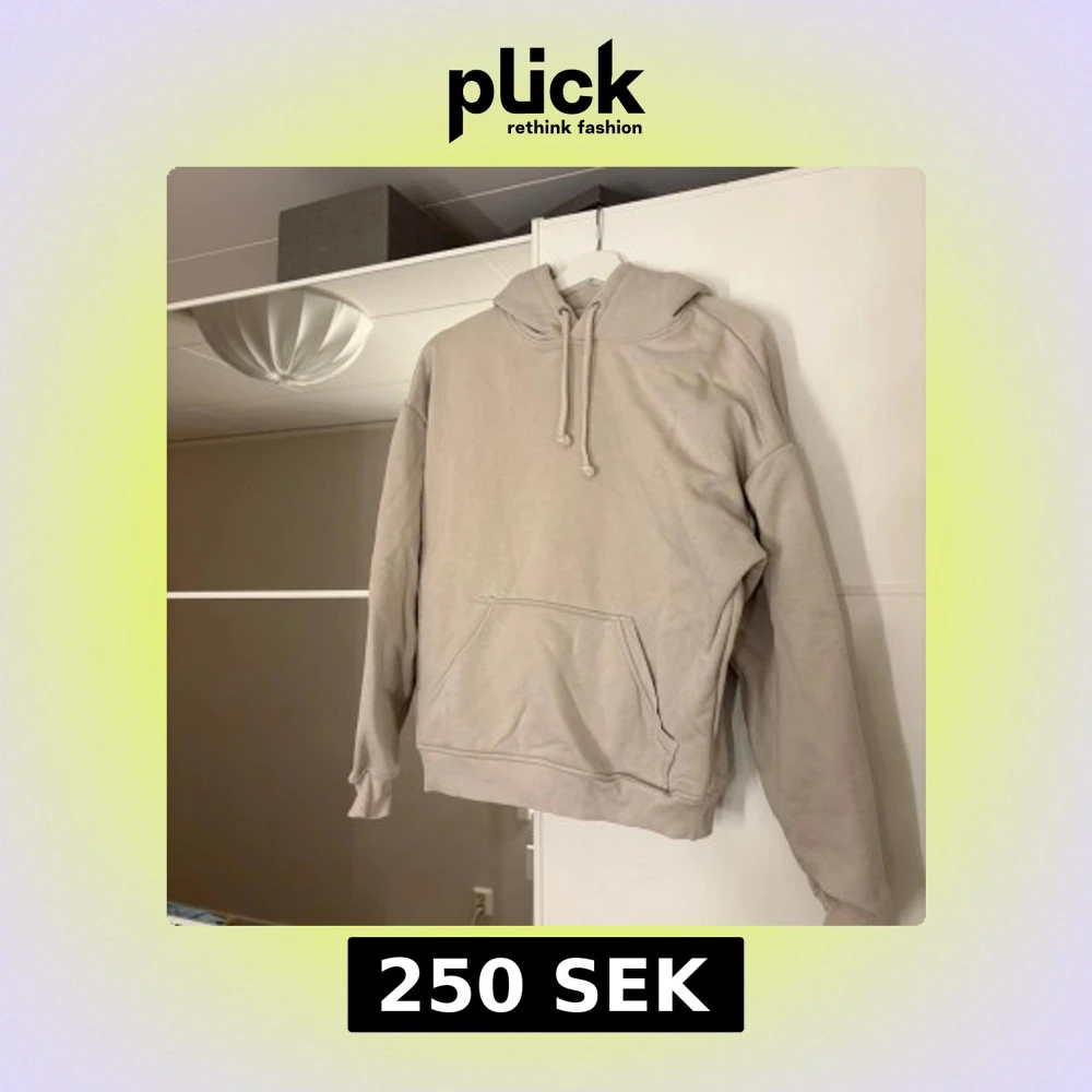 Säljer en stilren beige hoodie med ficka och justerbar huva. Hör av er vid funderingar eller om ni vill ha bilder med hur plagget sitter på mig. Titta gärna in mina andra plagg!