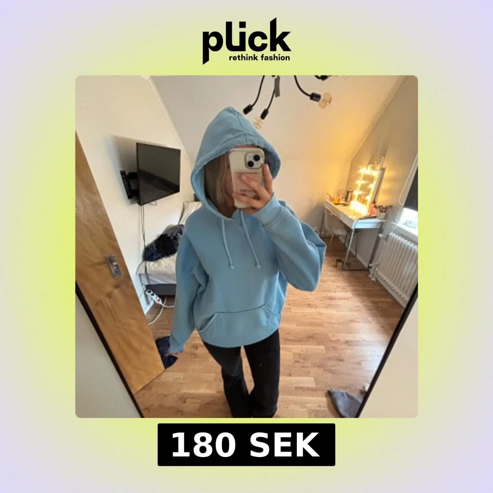 Mysig ljusblå hoodie från BikBok med huva och snörning. Tröjan har en klassisk känguruficka framtill och är i mjukt material med fleece på insidan. Perfekt för chill dagar eller när du vill vara extra comfy.