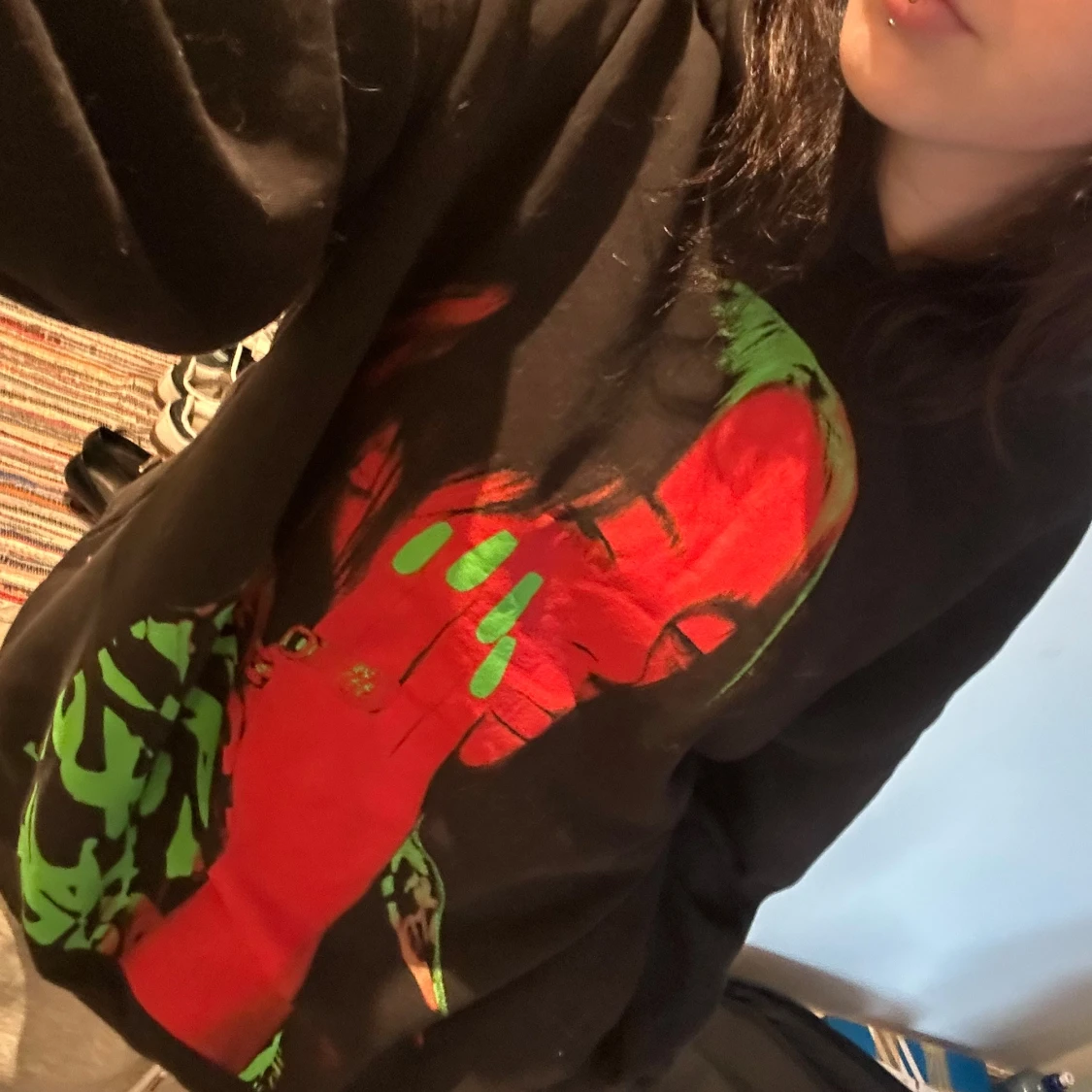Säljer nu en Bille Eilish hoodie i storlek S (passar även M) då den inte längre kommer till användning här hemma. Katter finns i hemmet men allt tvättas innan det skickas💕