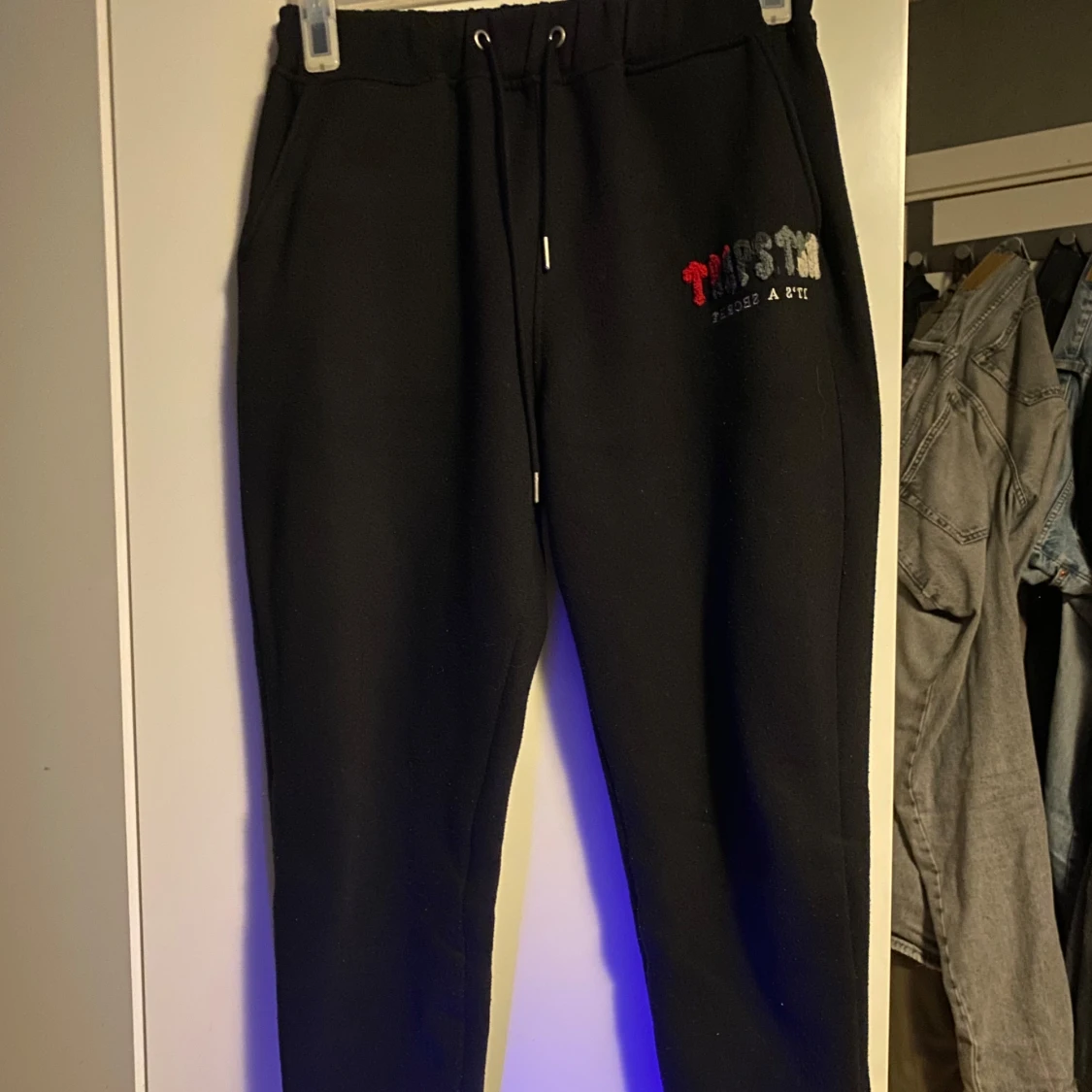Tracksuiten är i storlek M, är faktiskt inte säker på om den är äkta eller inte därav de låga priset, både tröjan och byxorna är ganska noppriga men annars så är det ändå bra skick, väldigt varmt och mjukt material på insidan. Skriv för fler bilder eller frågor