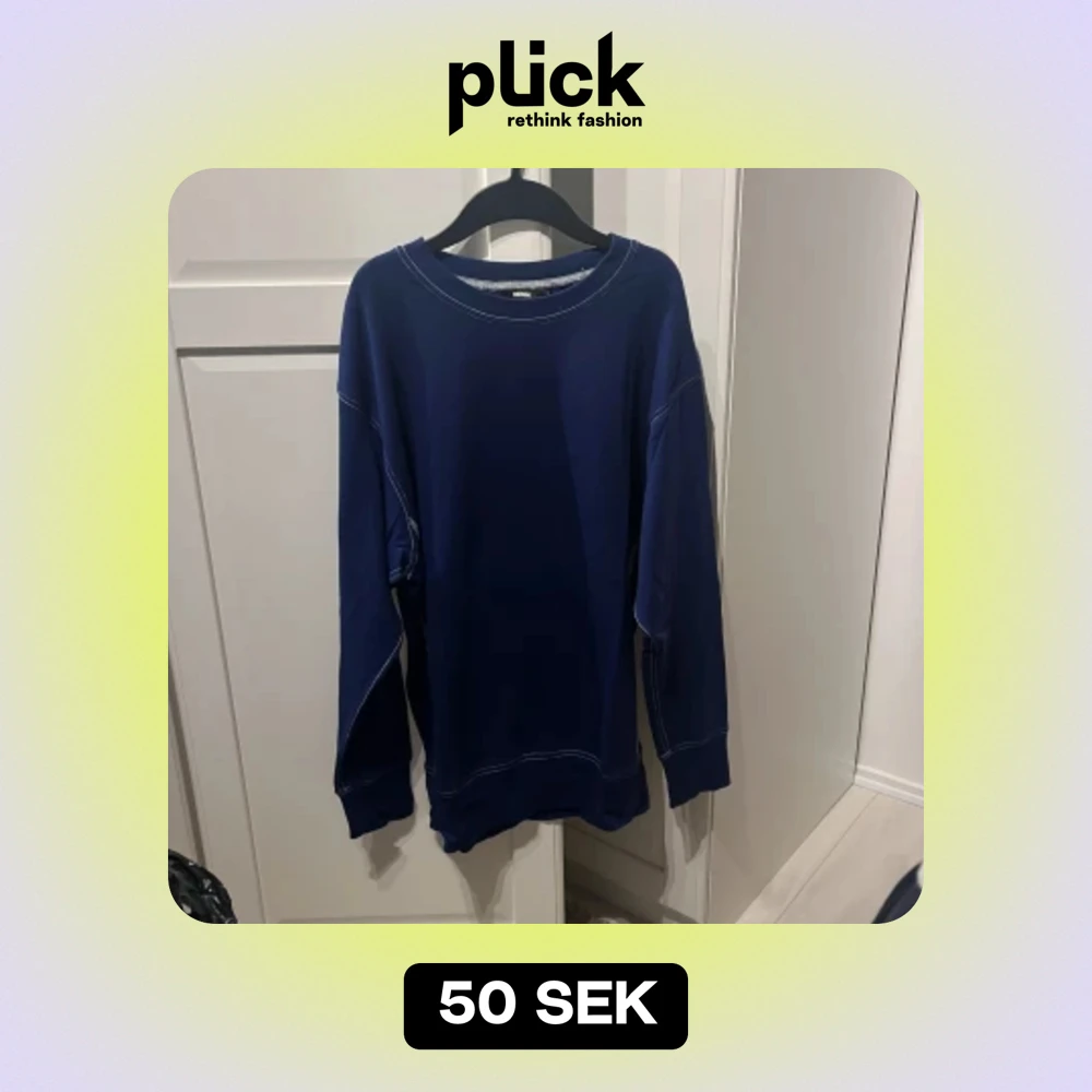 Mörkblå sweatshirt med vita sömmar. Storlek S från Bik Bok