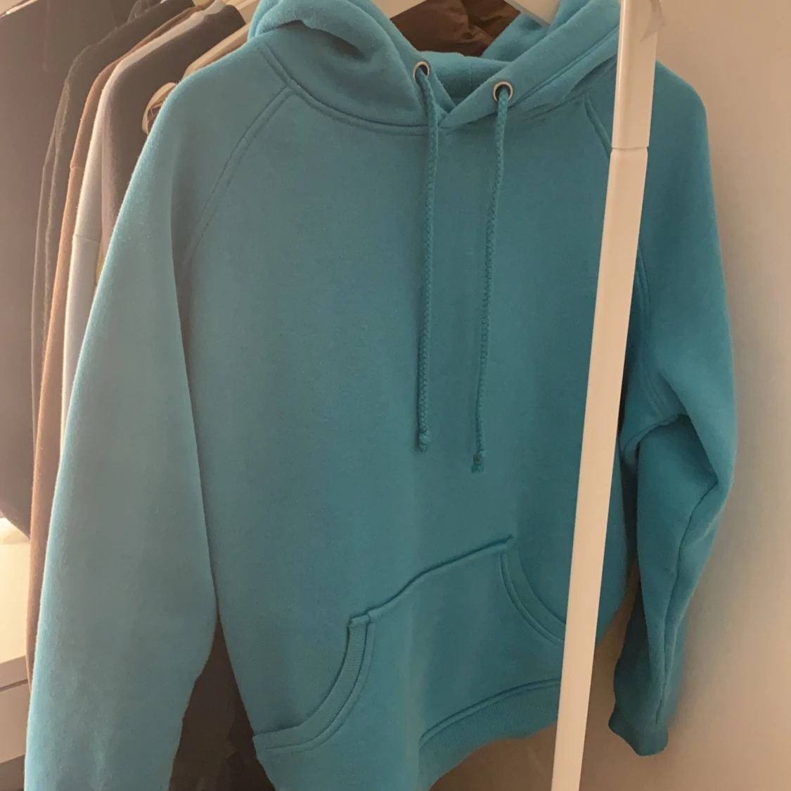 Blå hoodie från bik bok som är slutsåld. Endast använd ett fåtal gånger. Storlek XS men väldigt oversized och passar mig som i vanliga fall har Small eller Medium.