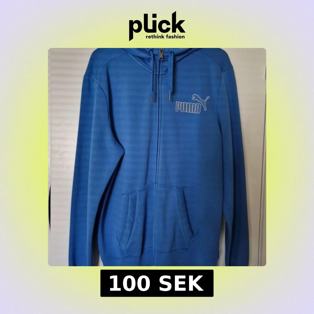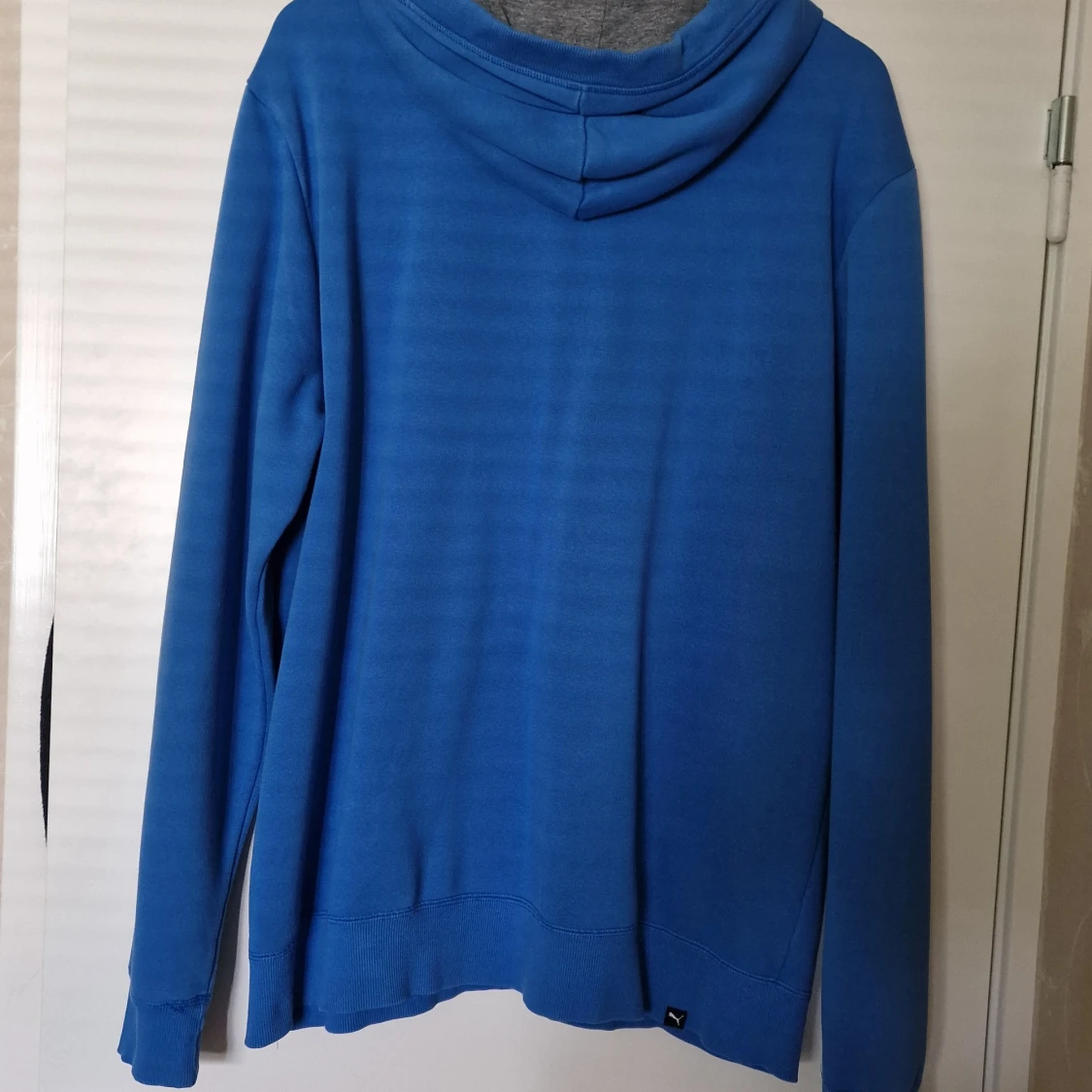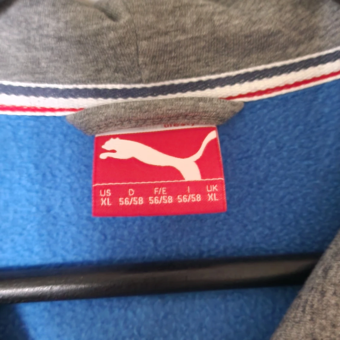 Blå hoodie från Puma i storlek XL med dragkedja och huva. Tröjan har fickor framtill och Puma-logga på bröstet. Perfekt för chill dagar eller när du vill ha en sportig look. Tillverkad i mjukt material för extra komfort.
