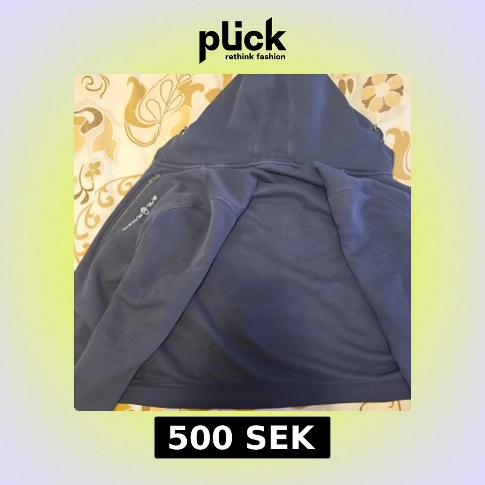 Säljer en blå huvtröja från Sail Racing med dragkedja och huva. Tröjan har en bröstficka med dragkedja och ribbade muddar vid ärmslut och nederkant. Perfekt för en avslappnad stil.
