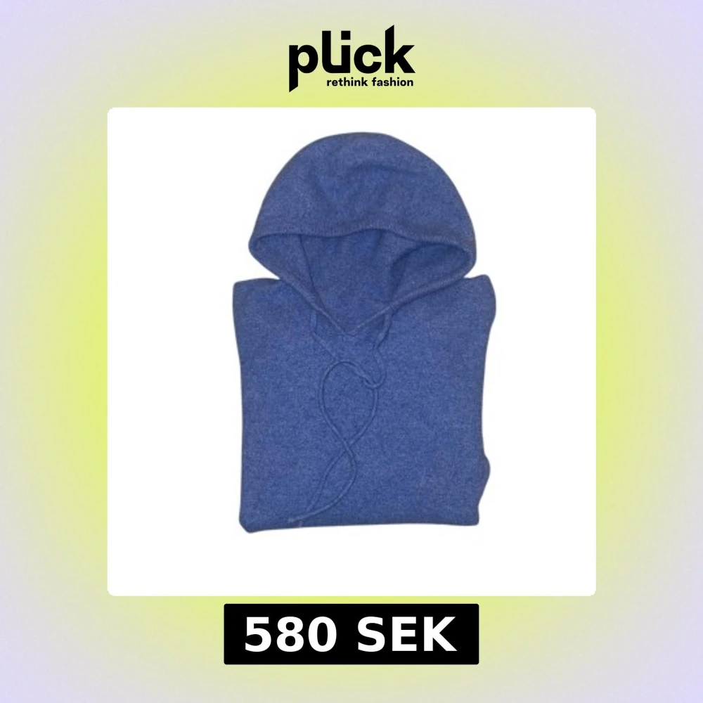 Mysig blå hoodie i stickat material med huva och snörning framtill. Tröjan har långärmade ärmar och en relaxed passform som gör den perfekt för chill dagar. Enkel design utan mönster eller logga, passar dig som gillar stilrena plagg.