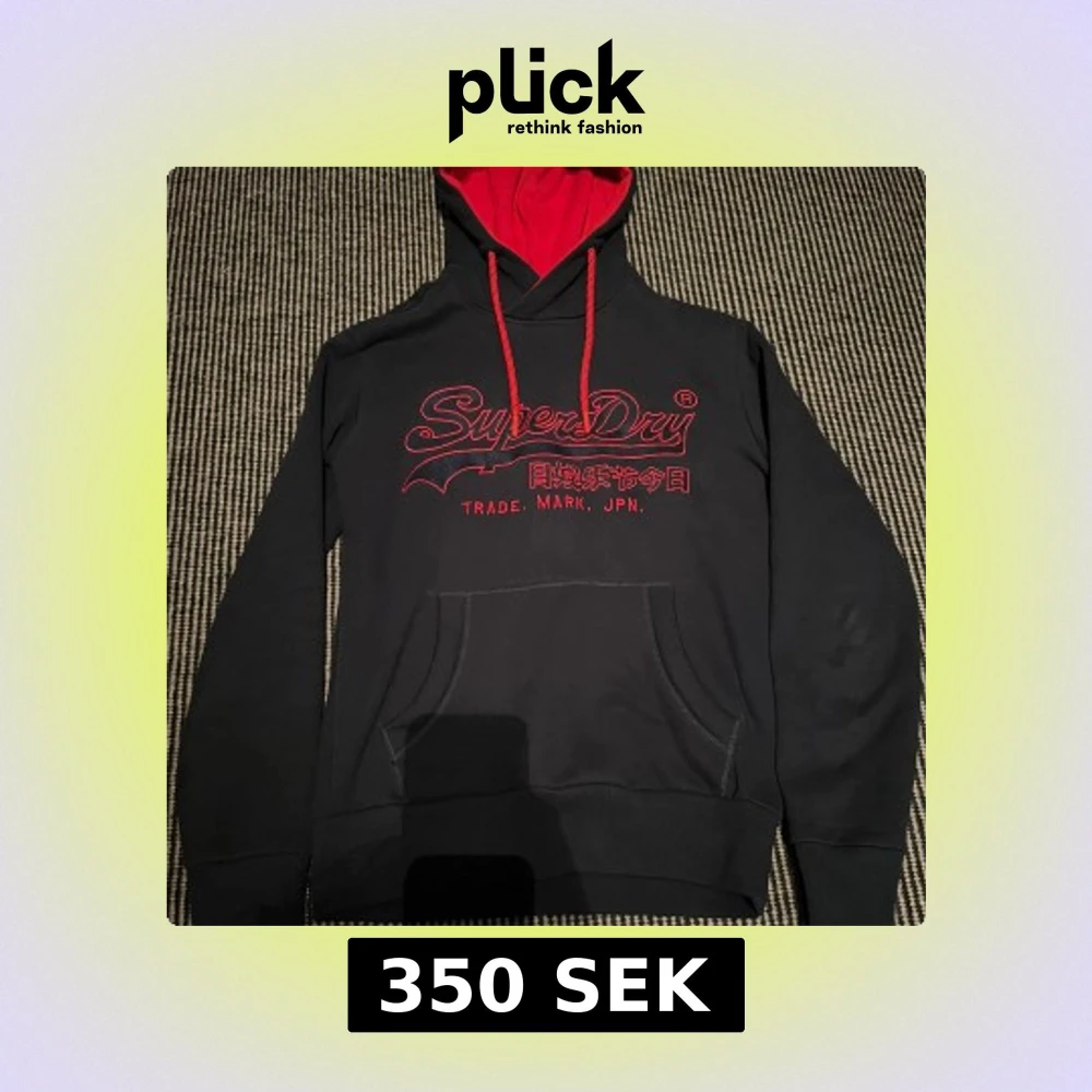 En navy blue Superdry hoodie i väldigt bra skick och är enbart använd enstaka gånger. Är blå med röda detaljer med skönt och välgjort material med en cool och slick design.