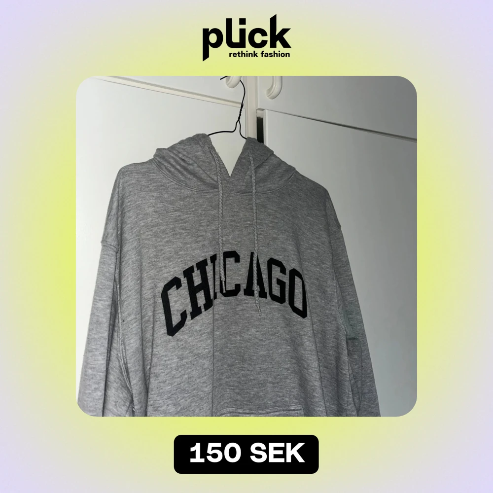 Grå Chicago hoodie från Boohoo , bra kvalite då den bara är använd ett fåtal gånger 💗