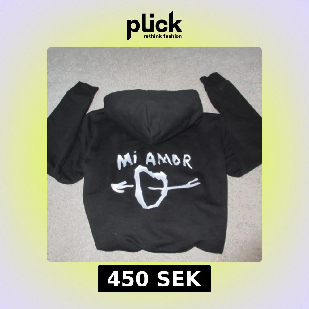 Mira Paris hoodie där det står ”mi amor” på ryggen. Extremt mjukt och skönt material. Aldrig andvänd. Nypris är 1449kr. På sista bilden ser man hur trycket på hooodien är sytt. Storlek M.💘