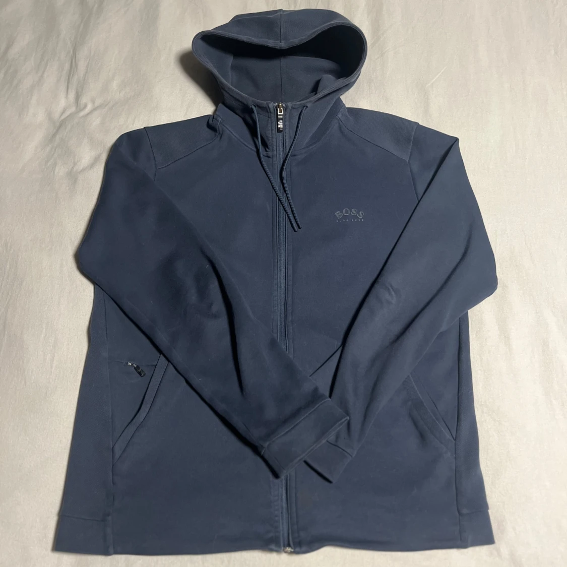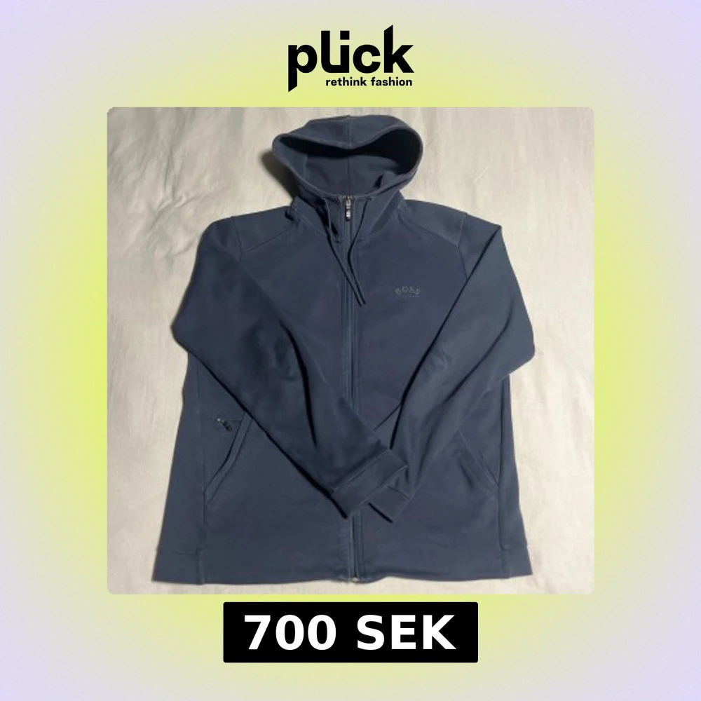 Säljer en mörkblå zip hoodie från Hugo boss. Använder den inte längre då den är lite stor för mig. Storlek M och inga defekter så i bra skick. Skriv vid frågor eller funderingar
