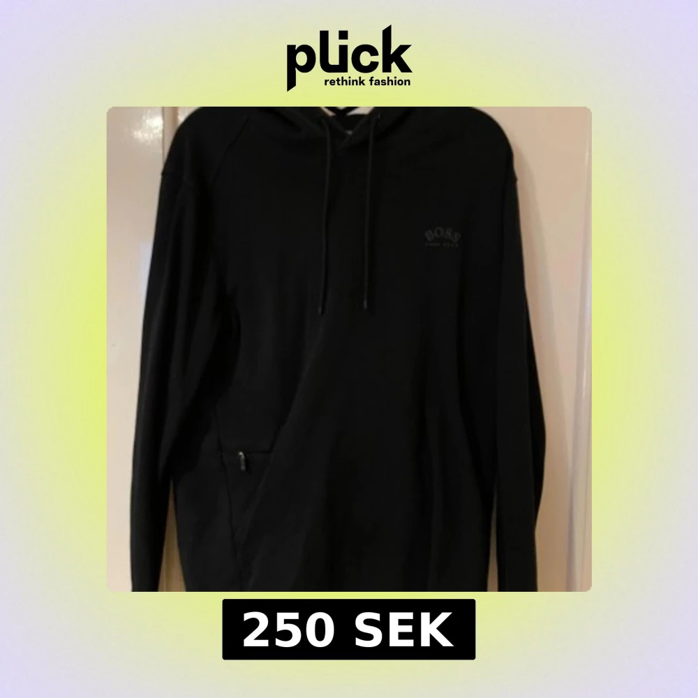 Svart hoodie från BOSS med diskret logga på bröstet, huva med snörning och långa ärmar. Varan är använd i bra skick utan skador. Den säljs i befintligt skick.
