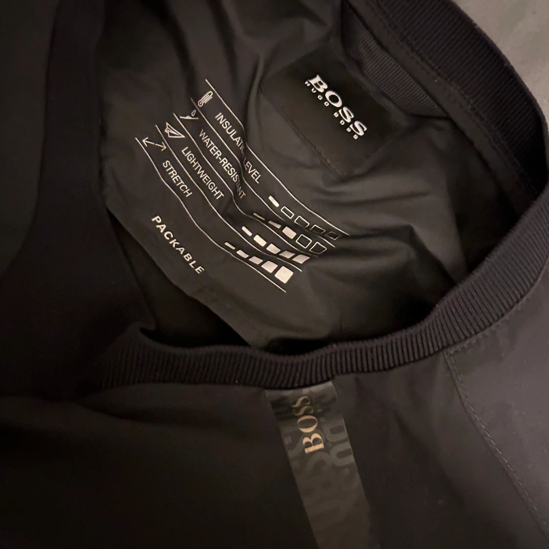 Snygg svart jacka från BOSS med diskreta logodetaljer och dragkedja på sidan. Jackan är lätt, vattenavvisande och har stretchigt material. Perfekt för dig som vill ha en stilren och funktionell jacka med exklusiv känsla.
