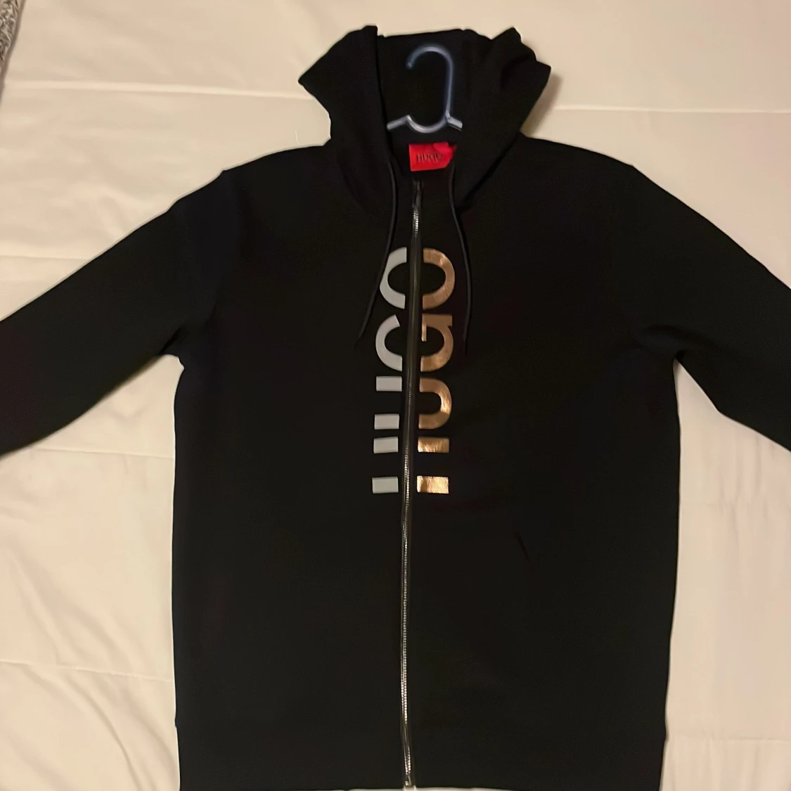 Helt ny oanvänd svart Hugo Boss kofta med guld silvrig logga, riktigt fin modell. Som sagt oanvänd och riktigt bra skick. Storlek S