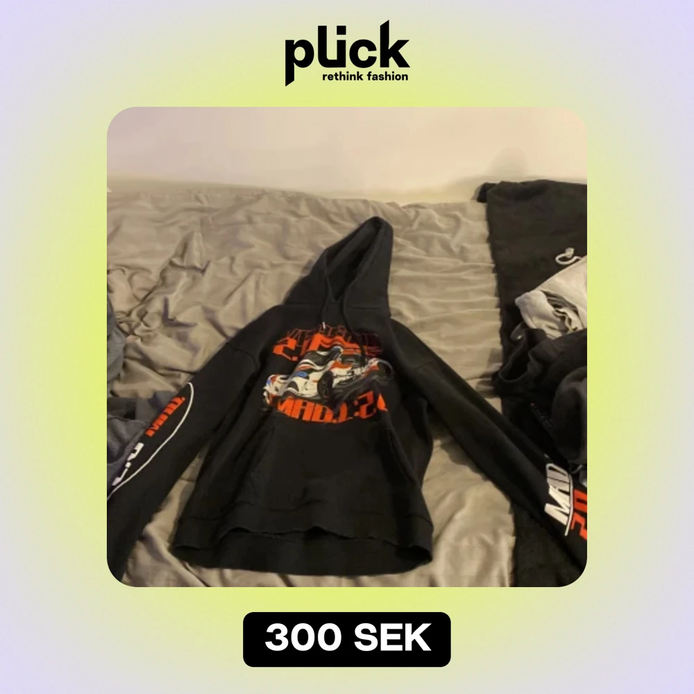Snygg hoodie med ett coolt tryck, köpte den från madlady för nått år sedan så den är ändå hyffsat använd men är ändå i bra skick och trycket är knappt slitet💕