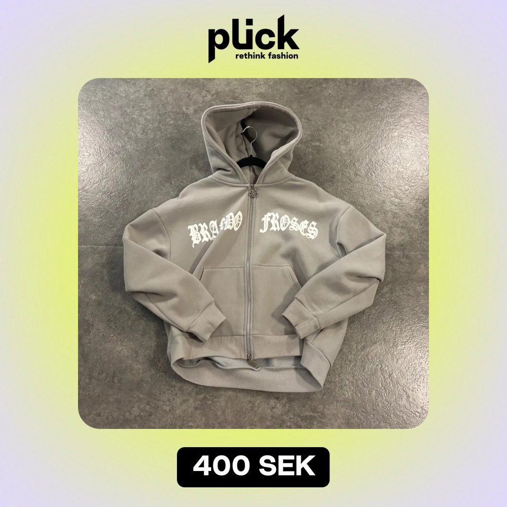 Grå Brand of Roses zip hoodie i mycket bra skick, inga hål eller defekter över huvudtaget. Hoodien är i storlek S men är ganska boxy i storleken. Nypris 1000kr