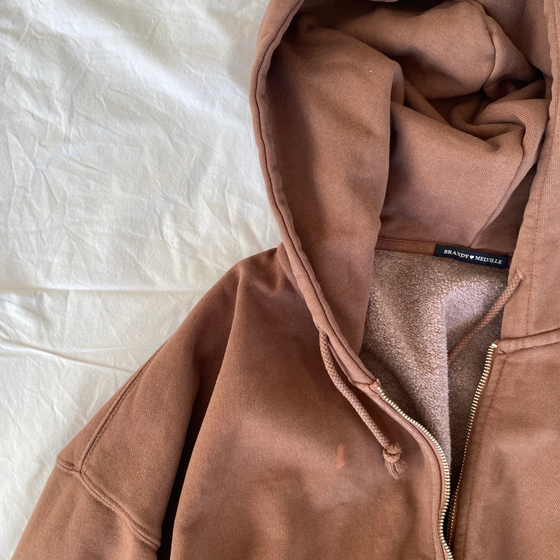 Säljer min populära bruna brandy hoodie i onesize men oversized modell. De två första bilderna är inte mina men min är i bra skick förutom att den har blekts lite på framsidan syns på bild 3. Nypris ca 450. Priset kan diskuteras🌴🌴🌴