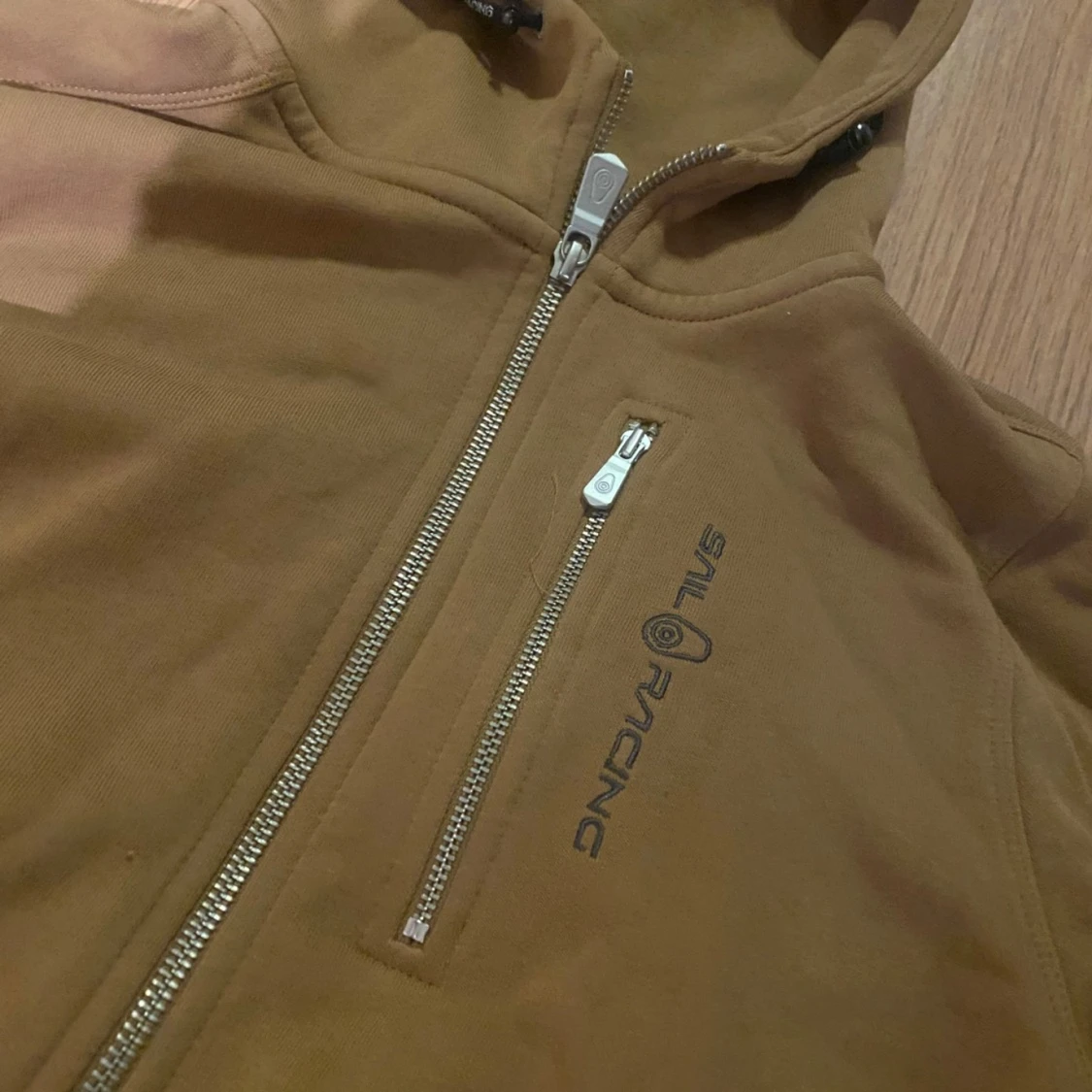 Snygg brun huvtröja från Sail Racing med dragkedja och en praktisk bröstficka. Perfekt för en avslappnad stil med sin bekväma passform och huva. Storlek 170!