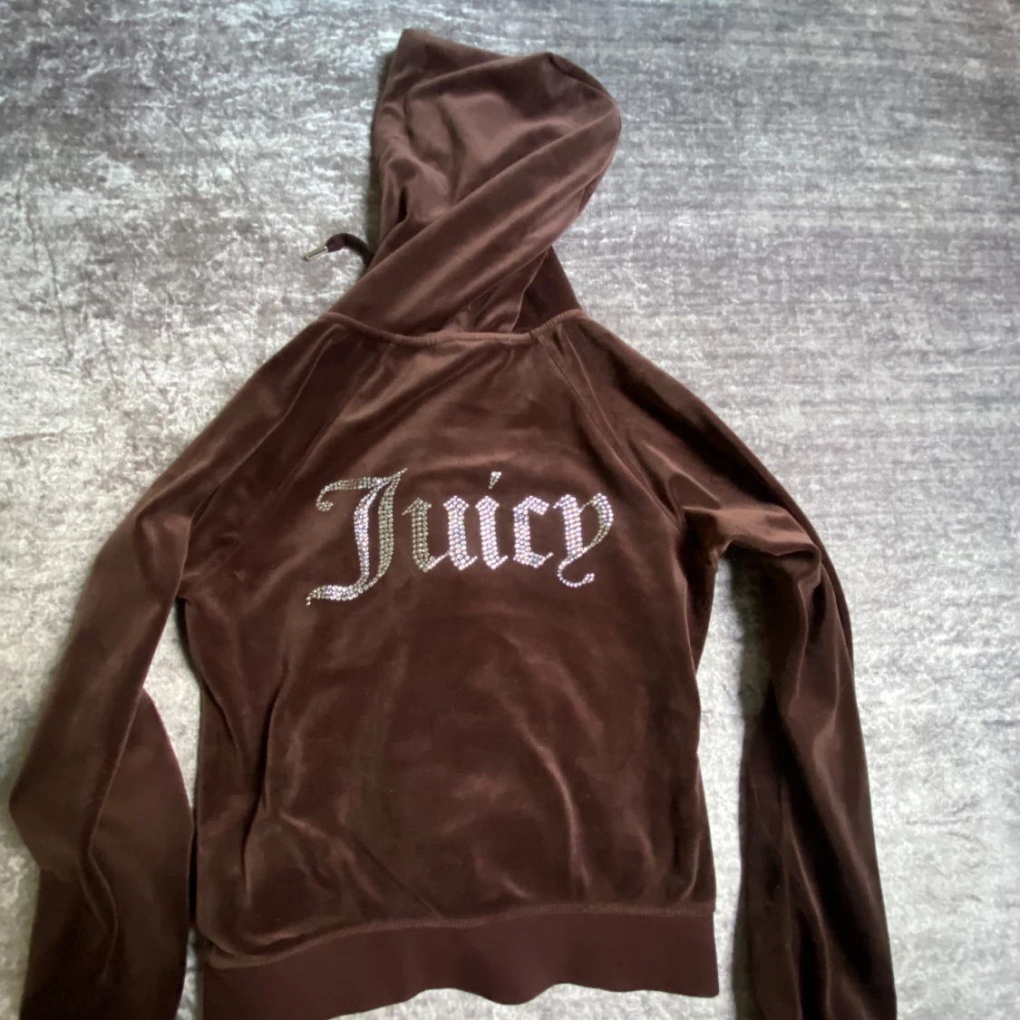 Mörkbrun hoodie i mjuk velour från Juicy Couture med glittrande Juicy-tryck på ryggen och JC-detaljer framtill. Dragkedja, huva och fickor. Perfekt för en avslappnad och trendig look. Lägger ut för 700 pga av den knappt är använd💗
