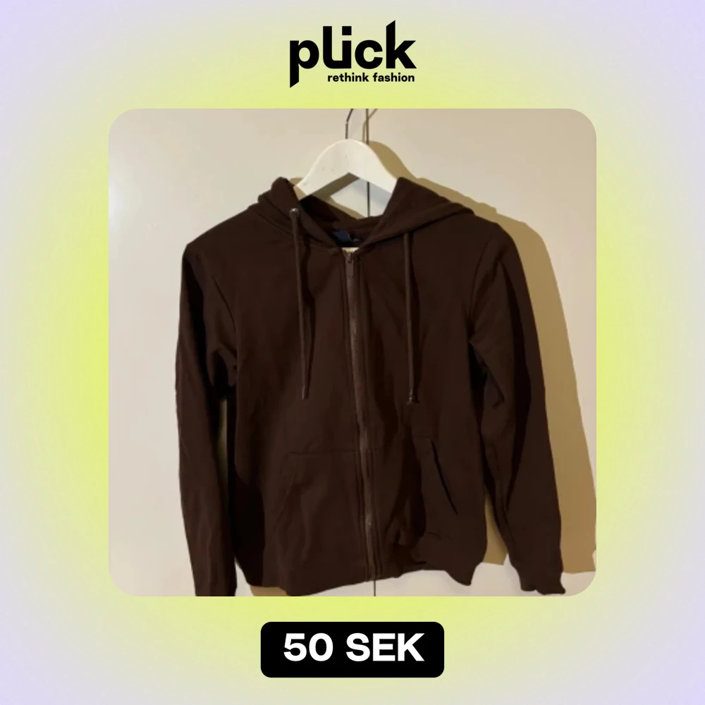 Brun ziphoodie med luva från Gekås Ullared. Storlek M, men liten i storleken så skulle säga att den sitter bra som en S. Fint skick, inga fläckar eller hål. Luva, dragkedja och fickor.
