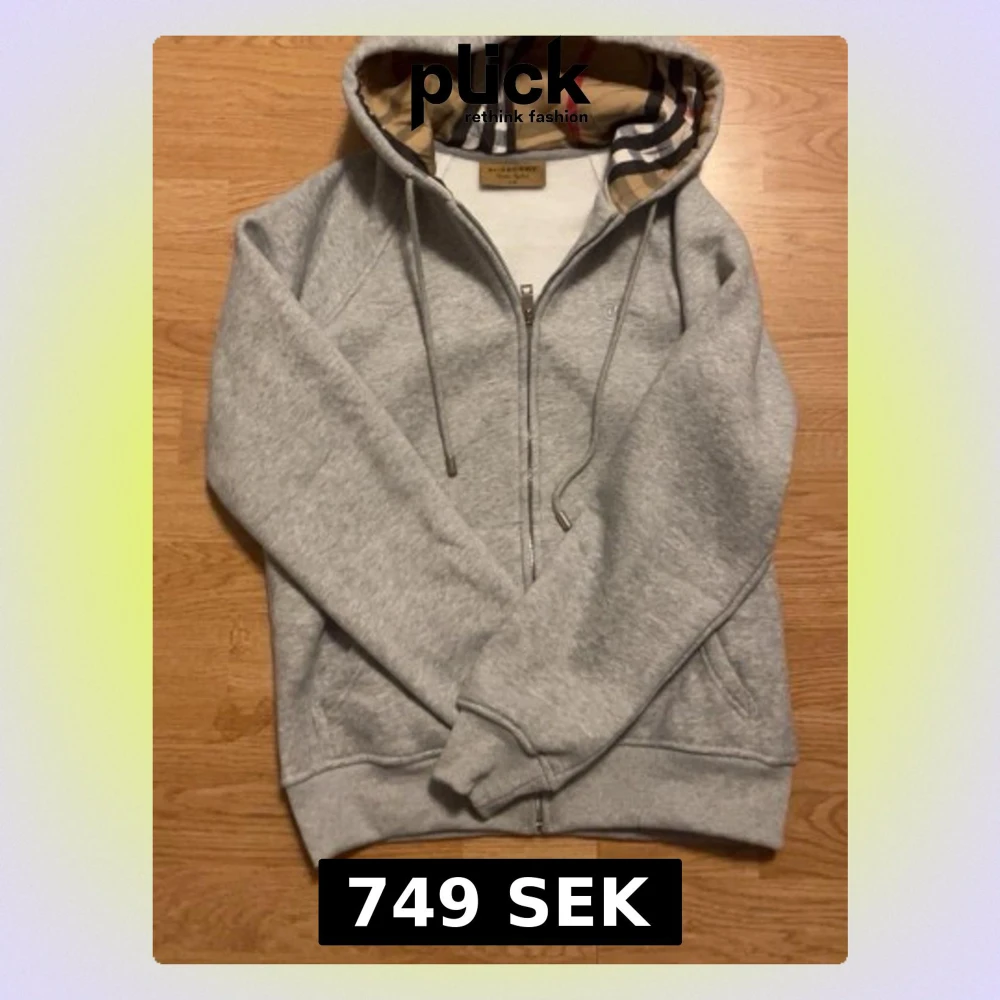 Grå zip burberry rep, strl L men sitter som M