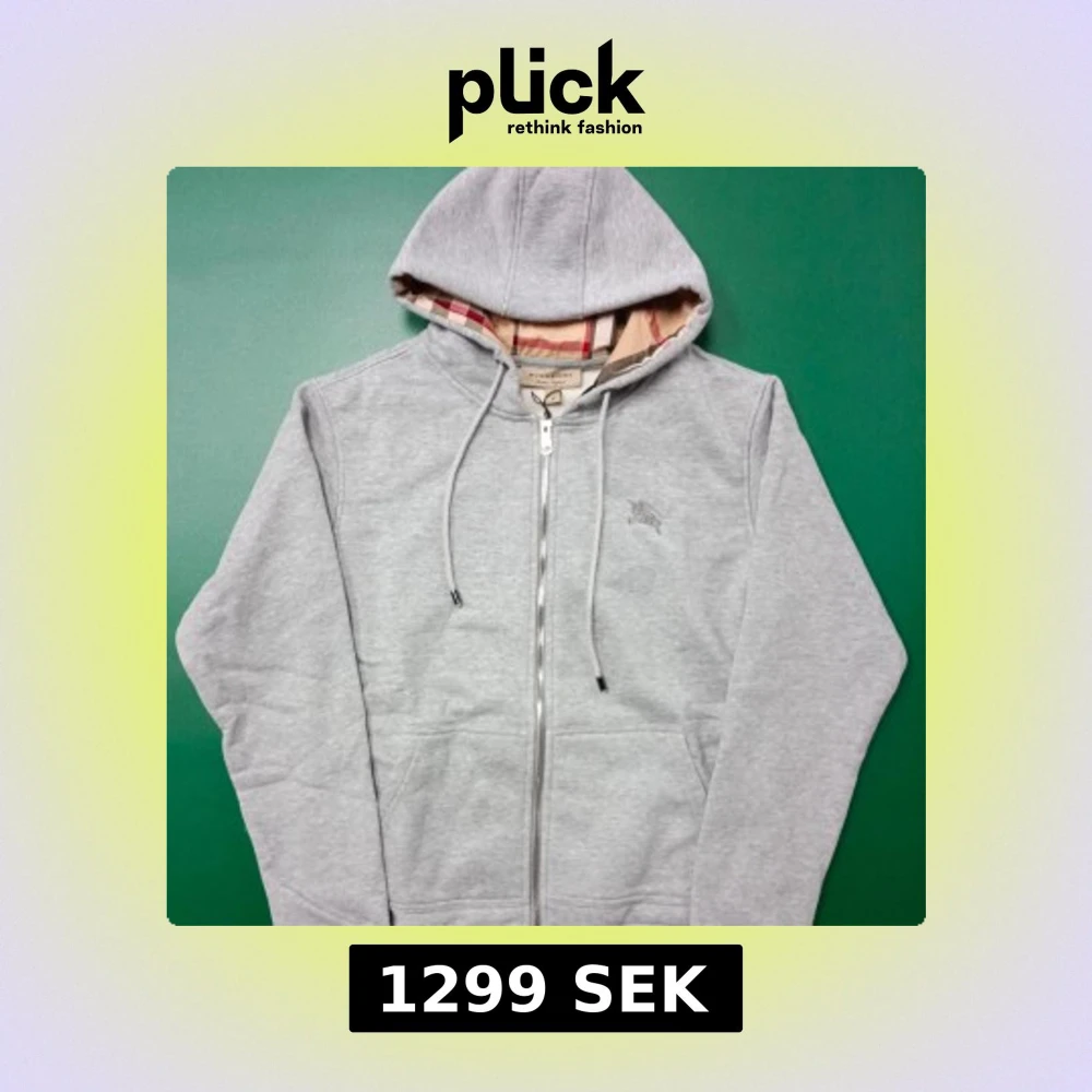 Snygg grå hoodie från Burberry i storlek M med klassisk rutmönstrad insida vid huvan. Tröjan har dragkedja framtill, snörning vid huvan och två fickor. Perfekt för dig som gillar stilrena och exklusiva märken.
