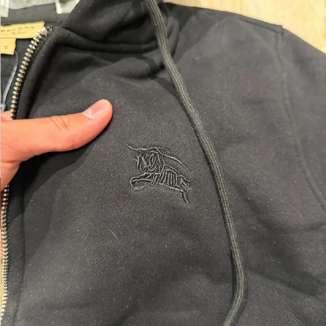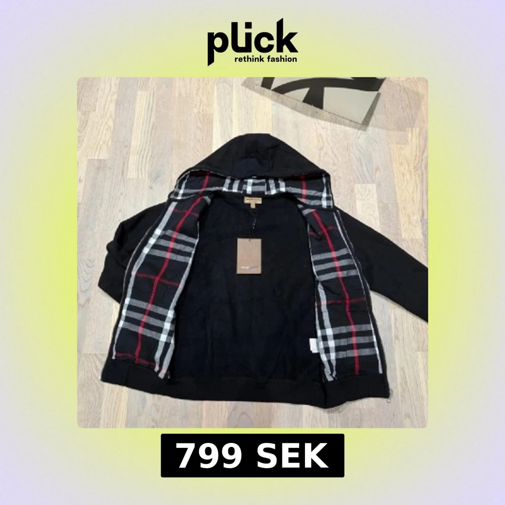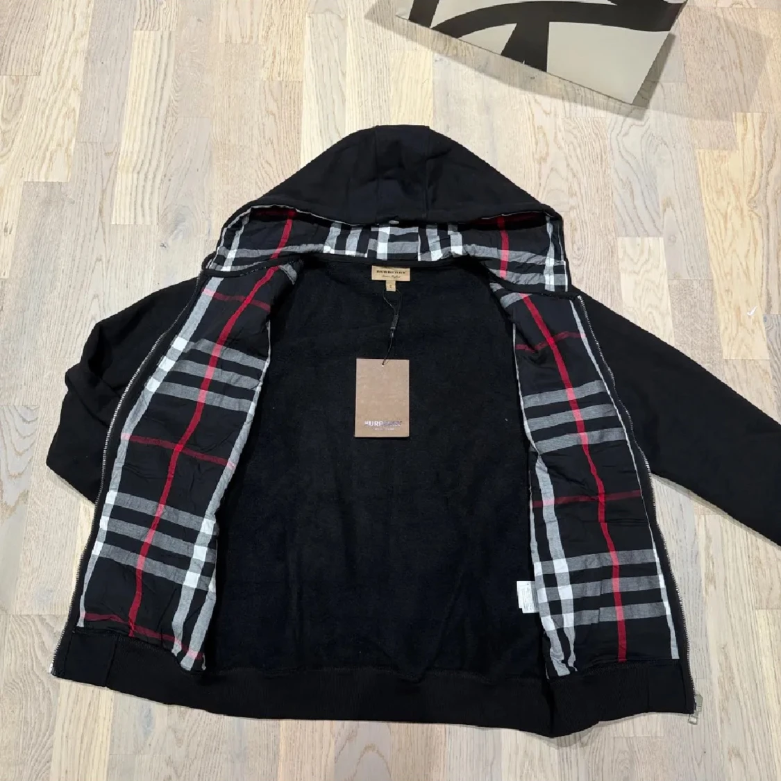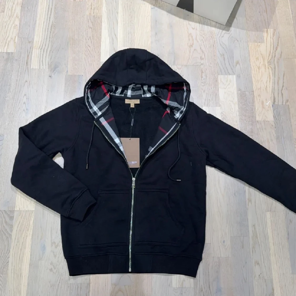 Snygg svart burberry zip hoodie i storlek S. Nyskick med tags kvar. Perfekt nu till det kalla vädret. Hör av er vid funderingar!