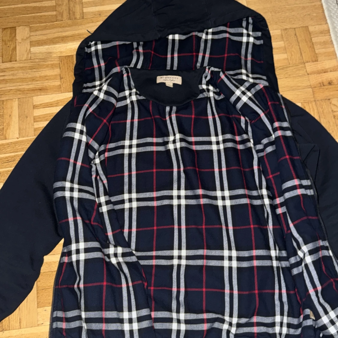Sällsynt burberry hoodie marinblå, burberry tyg innanför hela jackan till o me armarna. Bra omhändertagen, kan gå ner i pris vid snabb affär