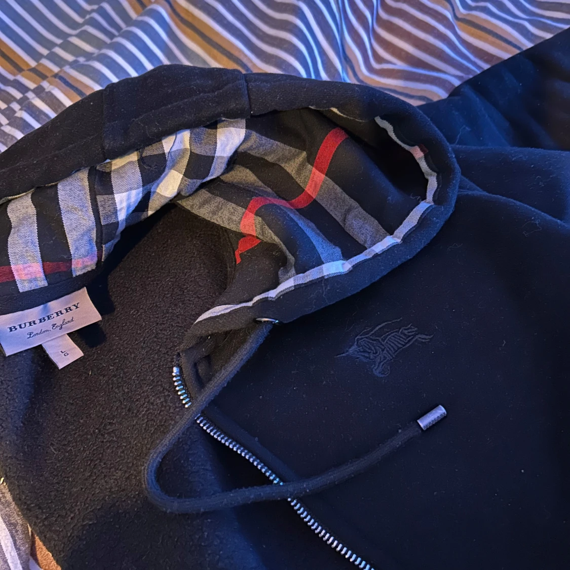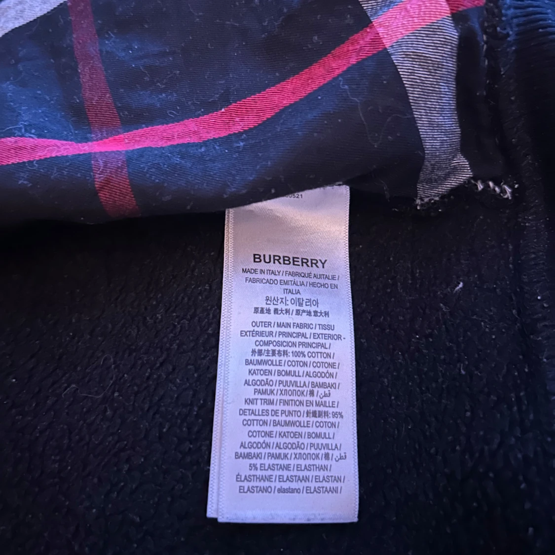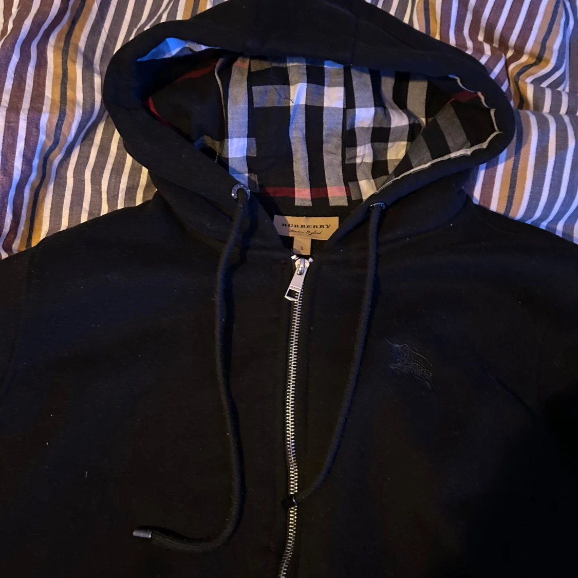 Säljer en stilren svart hoodie från Burberry med klassiskt rutigt mönster på insidan av huvan. Jackan har dragkedja och är tillverkad i bomull med elastan för extra komfort. Perfekt för en casual look med en touch av lyx. Inga defekter, säljer för den tyvärr inte passar längre. Skriv för fler frågor, priset kan diskuteras.