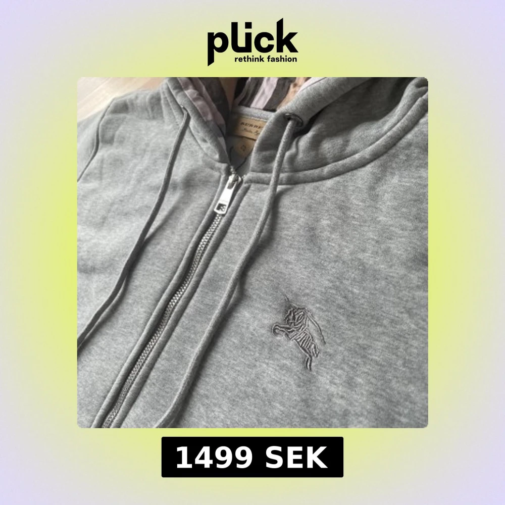 Snygg grå hoodie från Burberry med klassiskt rutigt foder i huvan. Tröjan har dragkedja framtill, snörning i huvan och broderad logga på bröstet. Tillverkad i mjuk bomullsmix, perfekt för chill dagar. Stora fickor framtill och ribbade muddar.
