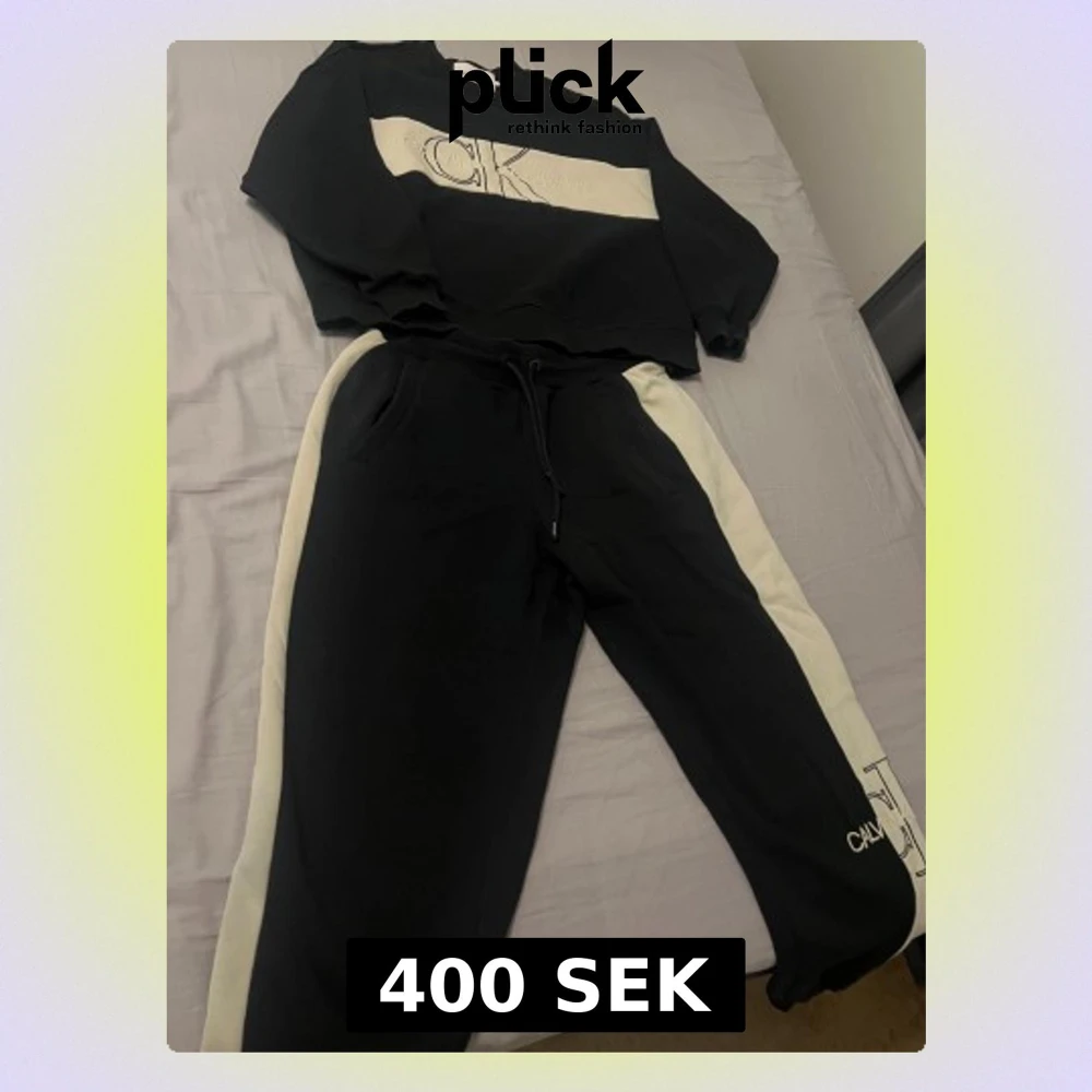 Snyggt svart/vitt Calvin Klein Jeans set i storlek M. Består av hoodie + matchande joggers. Mjuk och skön kvalitet, perfekt för chill eller vardag. Stilren CK-logga på bröstet och byxbenet. I fint skick och sparsamt använt. Normal passform.