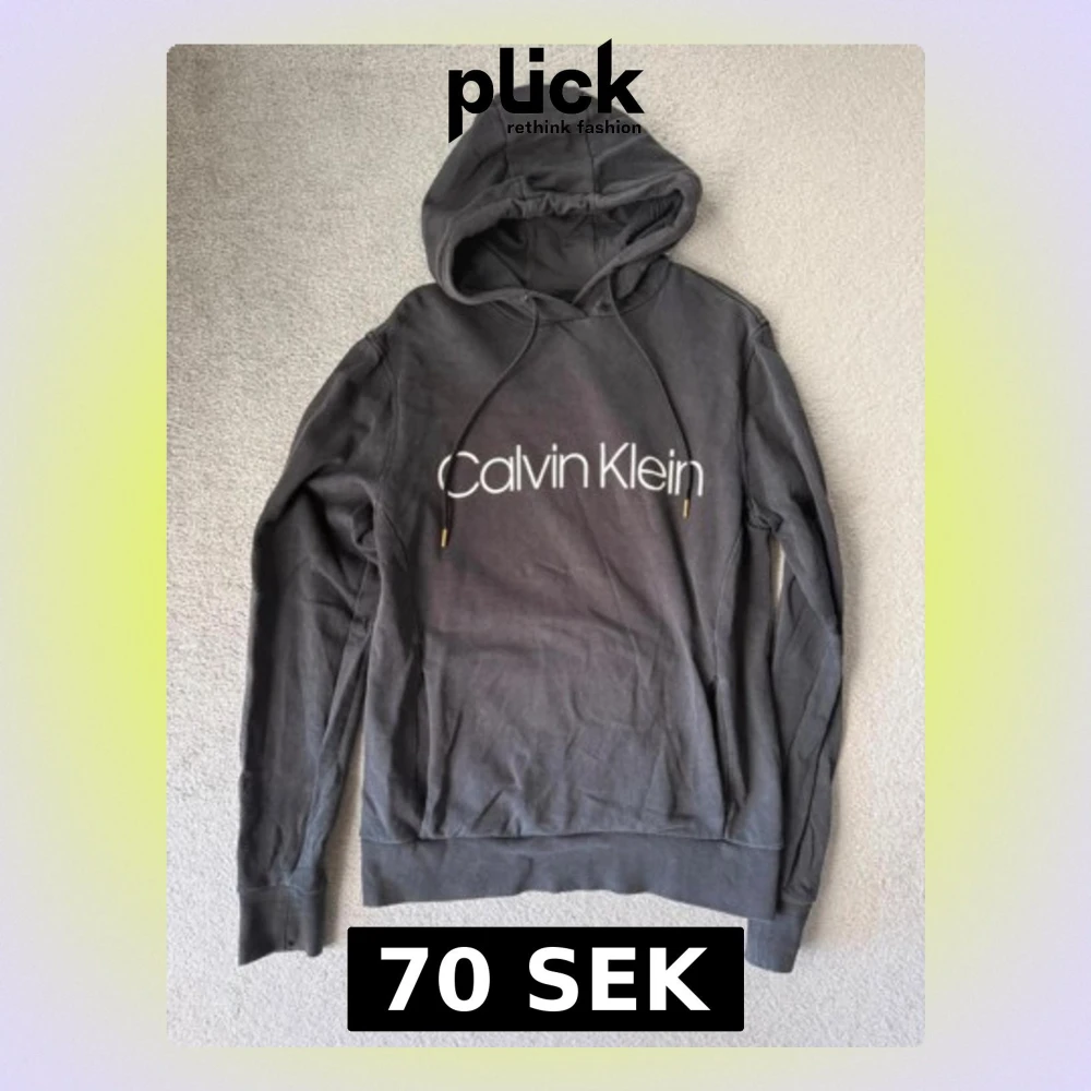 Snygg svart hoodie från Calvin Klein med stor vit logga på bröstet. Tröjan har huva med snörning och långa ärmar. Perfekt för chill dagar och enkel att matcha med jeans eller joggers. Jätte fint skick lite blekare än ny kanske. Rökfritt och djurfritt hem.
