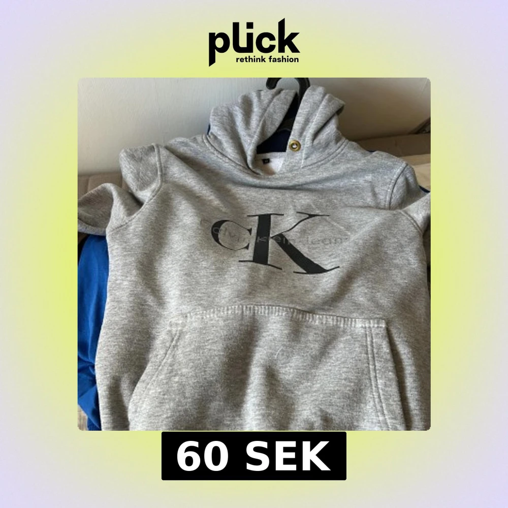 Snygg grå hoodie från Calvin Klein med stor svart CK-logga på bröstet. Tröjan har huva med metallöljett, magficka och ribbade muddar vid ärmslut och nederkant. Perfekt för en chill och stilren look.