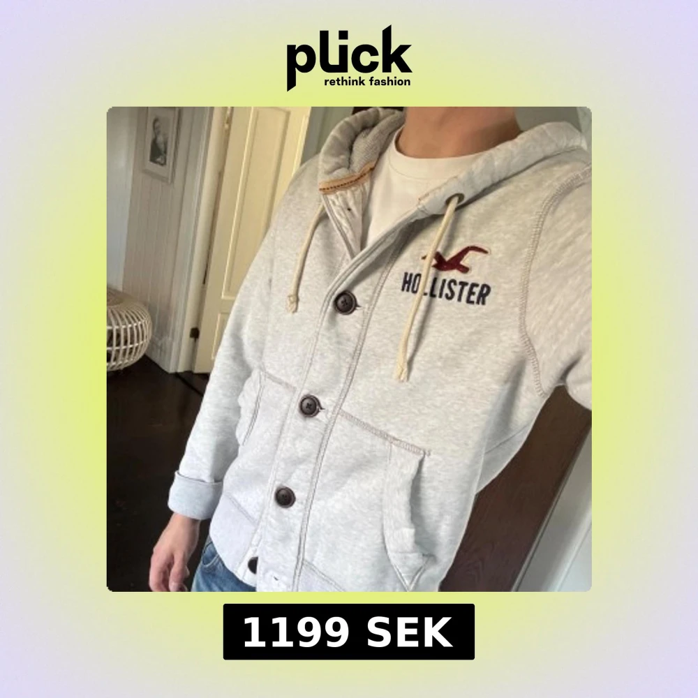 Sjukt sällsynt grå Hollister Hoodie med knappar på framsidan och loggan på bröstet. Riktigt bra skick. Storlek: Small. Passar perfekt nu till hösten!